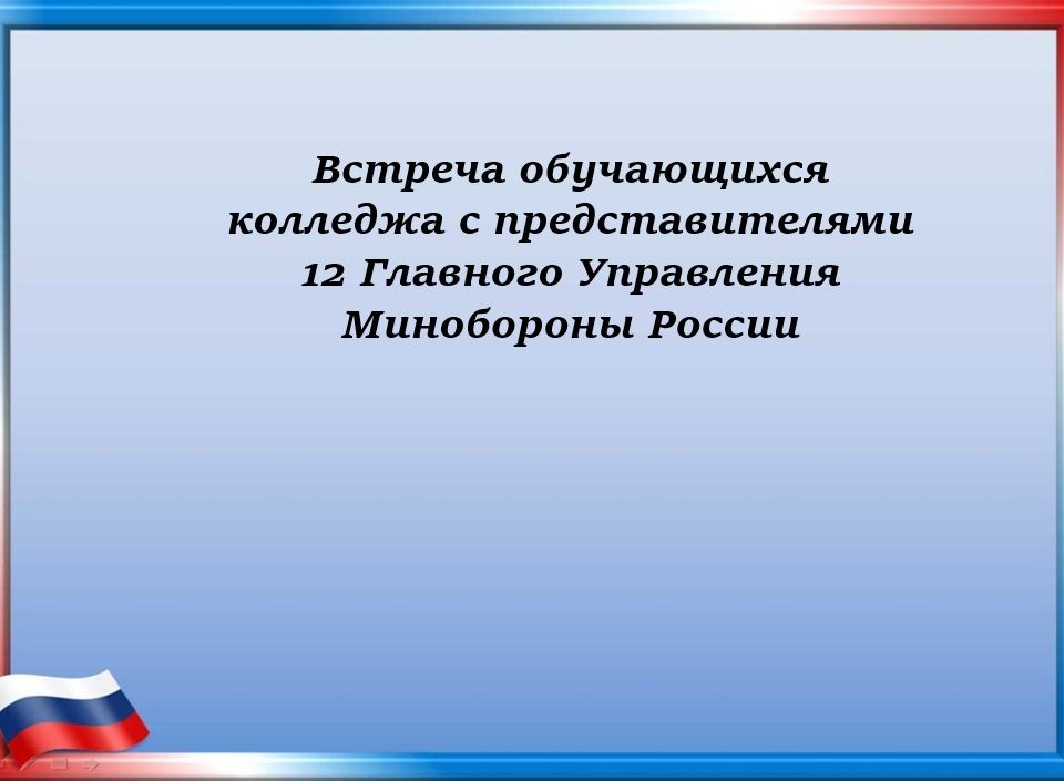 Встреча обучающихся колледжа с представителями 12 Главного Управления Минобороны России