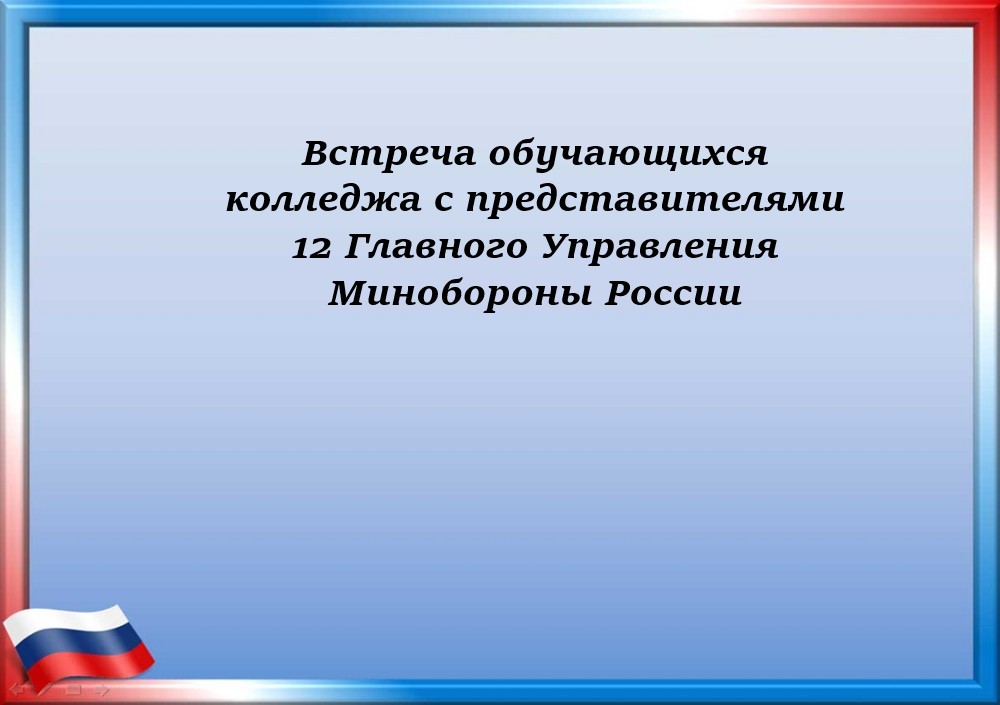 Встреча обучающихся колледжа с представителями 12 Главного Управления Минобороны России