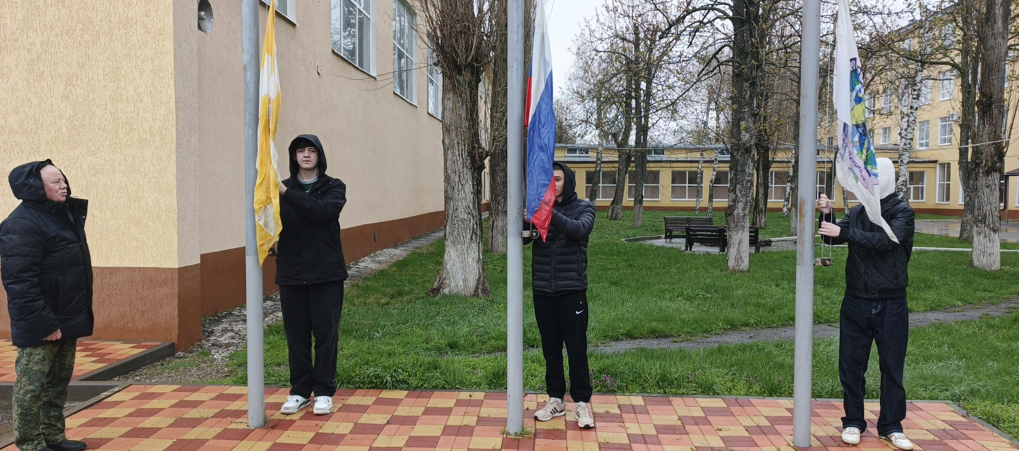 Поднятие Государственного флага Российской Федерации в нашем учебном заведении — это еженедельная церемония, которая проводится в первый учебный день недели.  Она направлена на формирование у студентов патриотизма, уважения к государственным символам и гражданской ответственности.   На этой неделе право поднять флаг было доверено студентам 2 курса группы ИП 246.