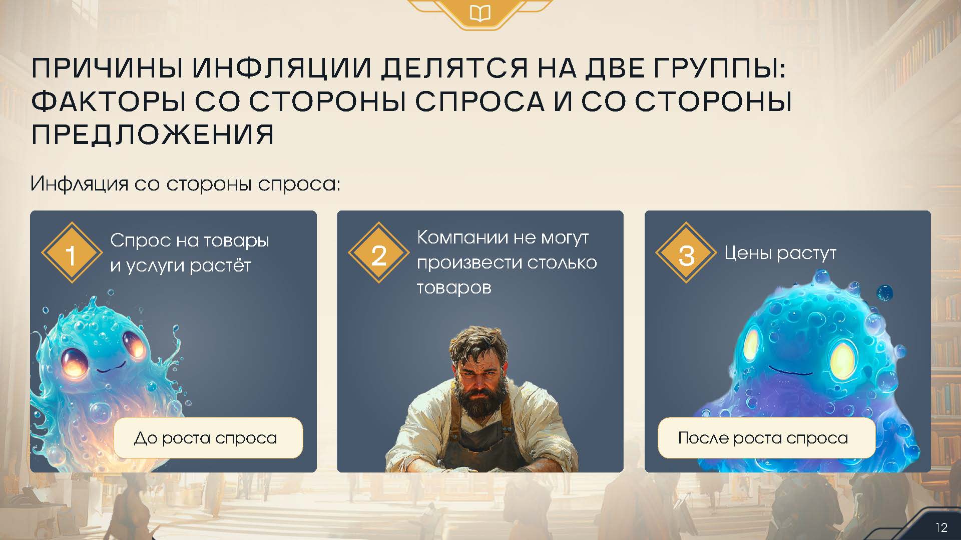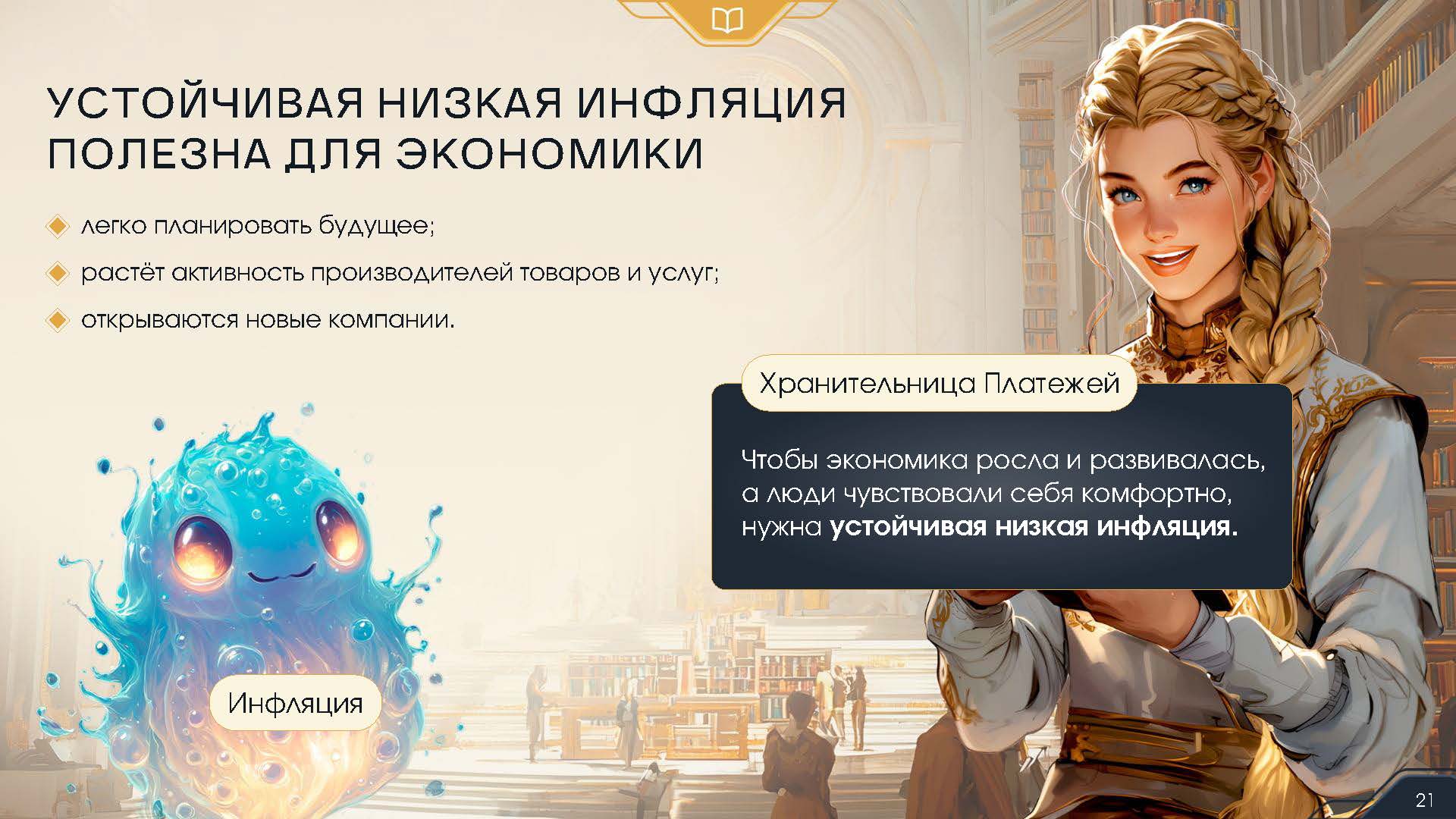 В ходе урока учащиеся узнали, почему цены растут, какой бывает инфляция, как можно влиять на инфляцию; разобрали базовые понятия: спрос, предложение, инфляция, гиперинфляция, дефляция, инфляционные ожидания, потребительская корзина, личная инфляция, ключевая ставка; закрепили изученный материал, выполняя интерактивные задания.