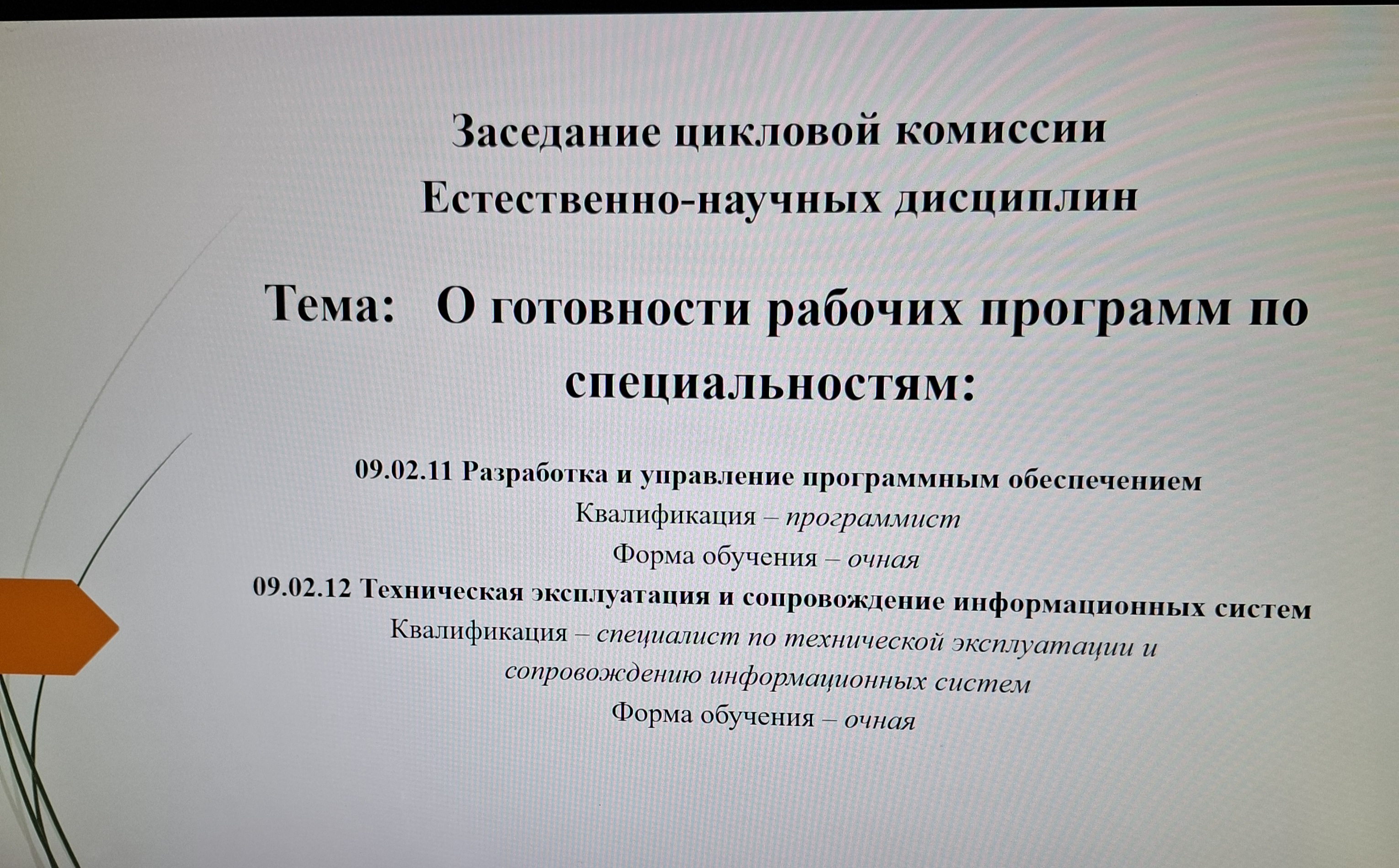 Заседание прошло под руководством председателя цикловой комиссии И. Д.