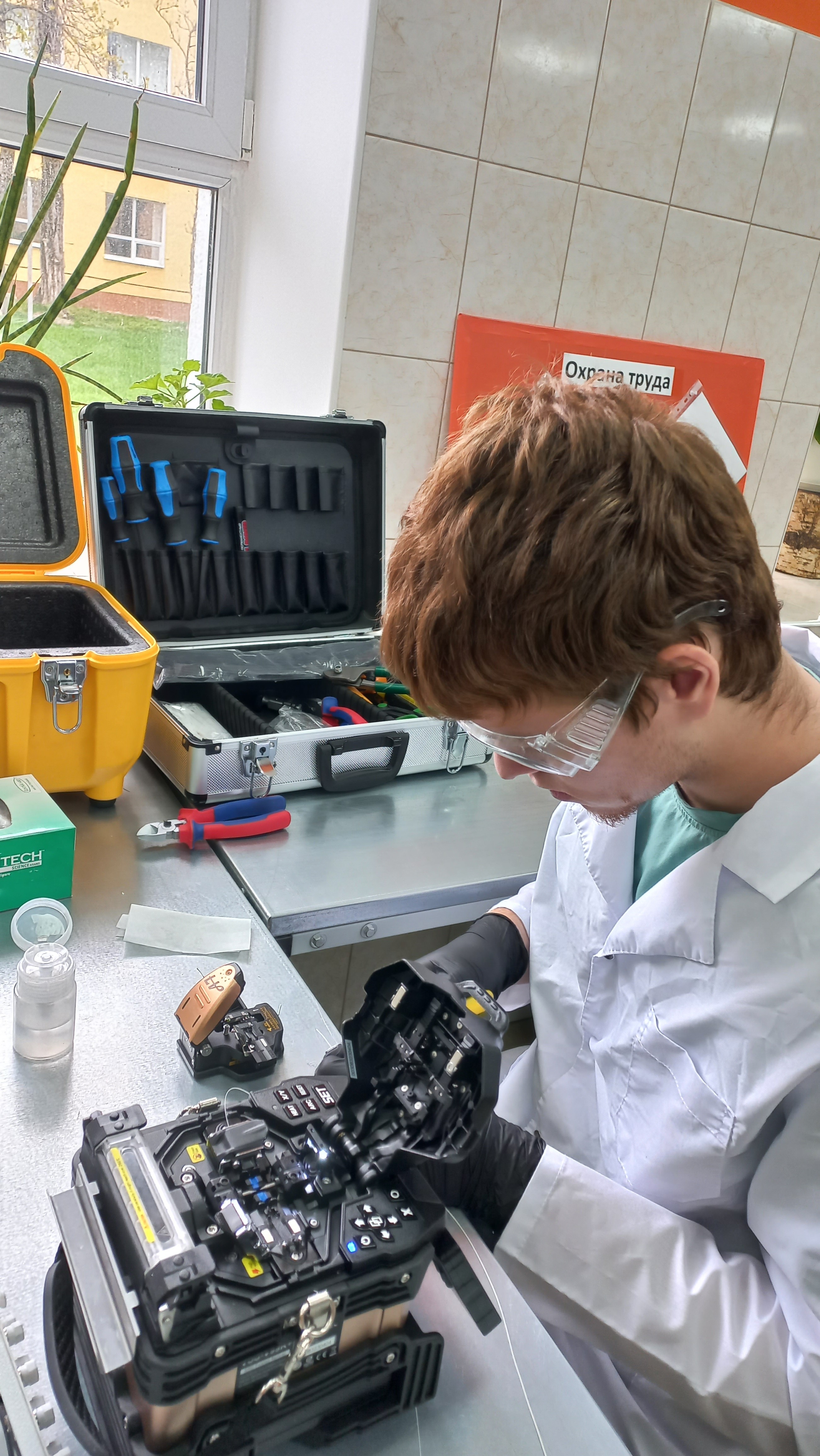 Задачей конкурса было выполнить разделку оптического кабеля в соответствии с требованиями, предъявляемыми к монтажу оптических кабелей, и произвести его монтаж.