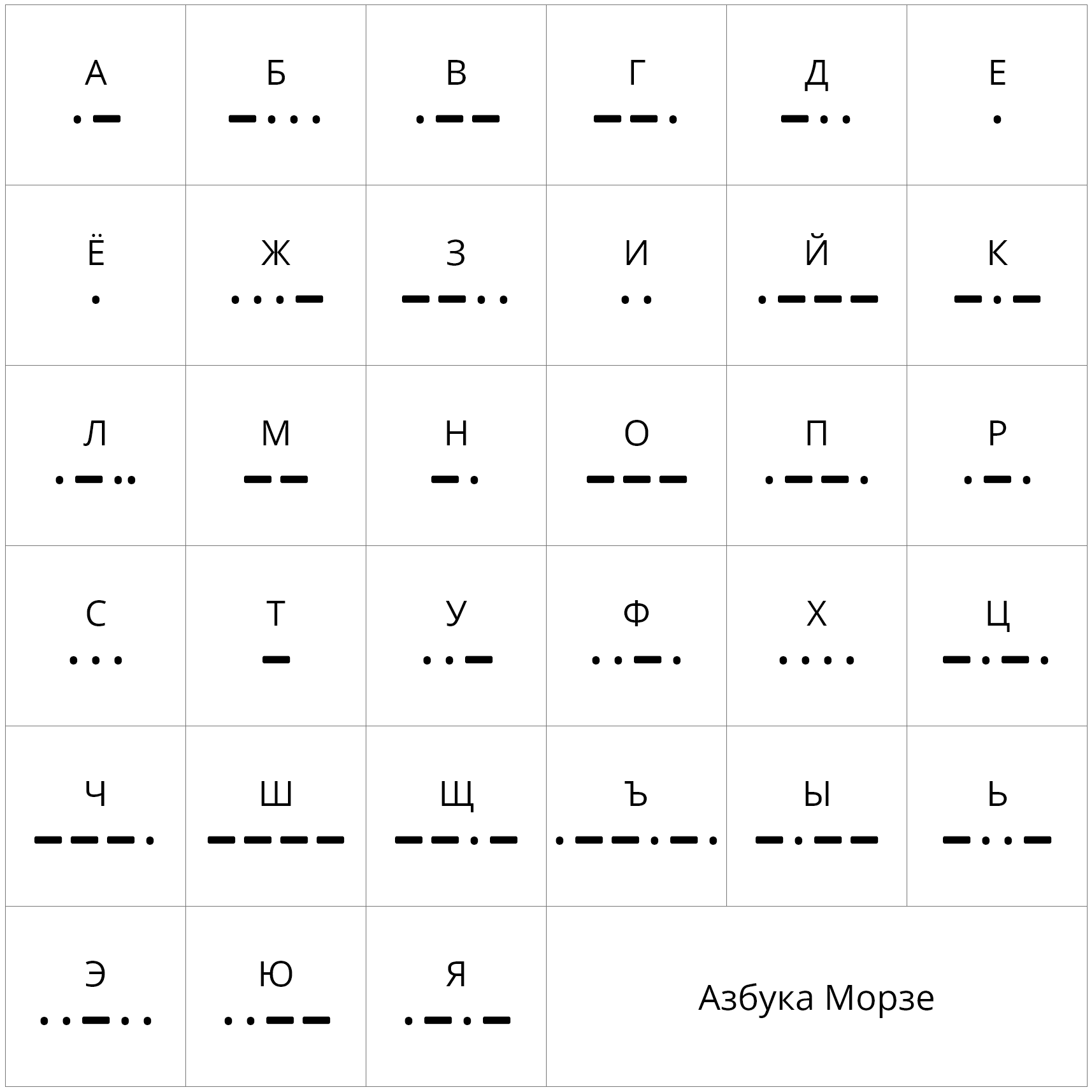 Азбуку Морзе изобрел Сэмюэл Финли Бриз Морзе в 1838 году. Код Морзе представляет собой сигналы автоматического телеграфирования, состоящие из коротких и длинных радиопосылок. Кодируются латинский алфавит и кириллица, а также знаки пунктуации и арабские цифры.