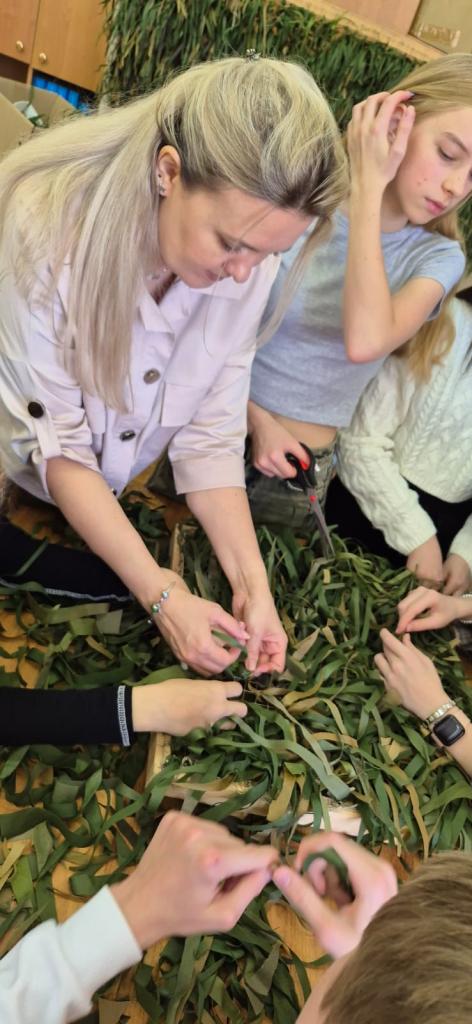 В рамках мастер-класса участники научились подбирать и комбинировать цвета, нарезать ленты необходимой длины, а также осваивали технологию закручивания и привязки лент к основе. Работа над маскировочными элементами требует высокой степени сосредоточенности, внимания к деталям, терпения, а также умения разбираться в схемах и технологии сборки.