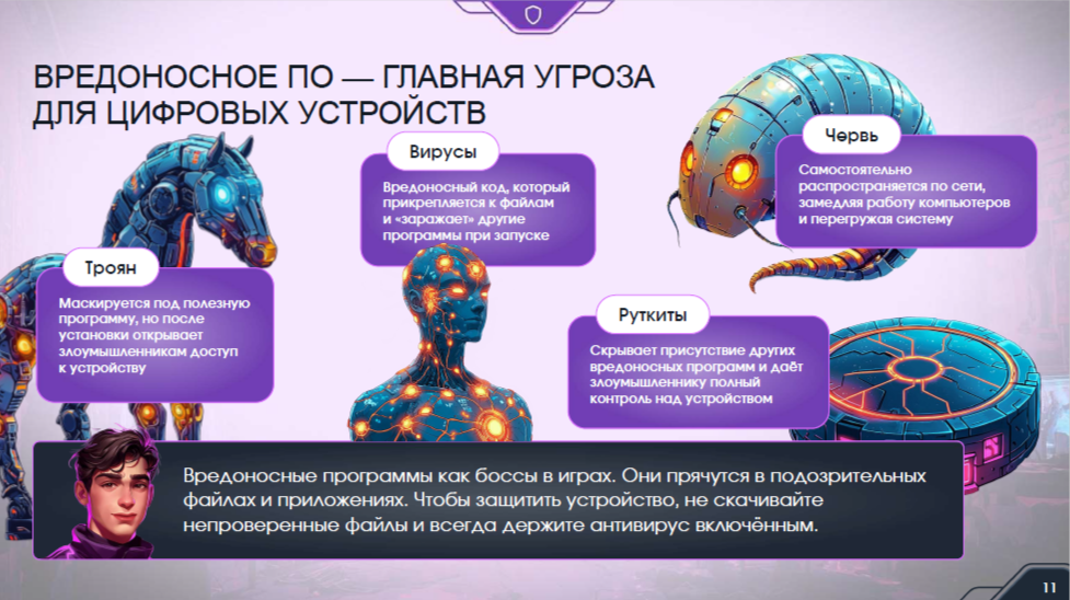 Урок включал интерактивные задания и вопросы, что позволило студентам лучше понять материал и применить его на практике. В ходе занятия ребята узнали, как действовать в случае подозрительных операций, как распознавать фишинг и какие меры предосторожности следует соблюдать при работе в интернете.