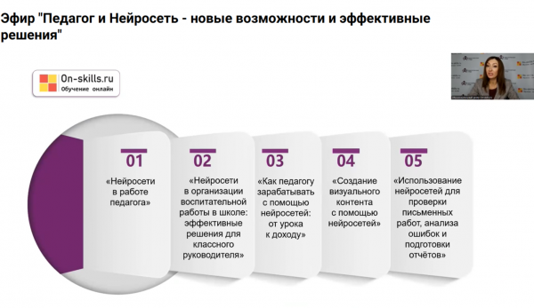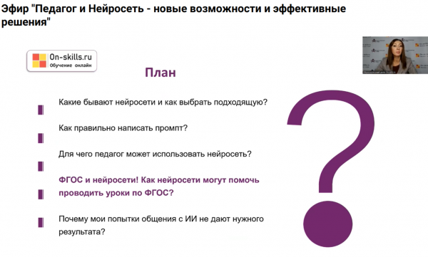 4. ФГОС и нейросети: обсуждалось, как нейросети помогают реализовывать ключевые принципы и требования Федерального государственного образовательного стандарта (ФГОС). Участники узнали, как использовать нейросети для создания интерактивных уроков, соответствующих современным образовательным стандартам.