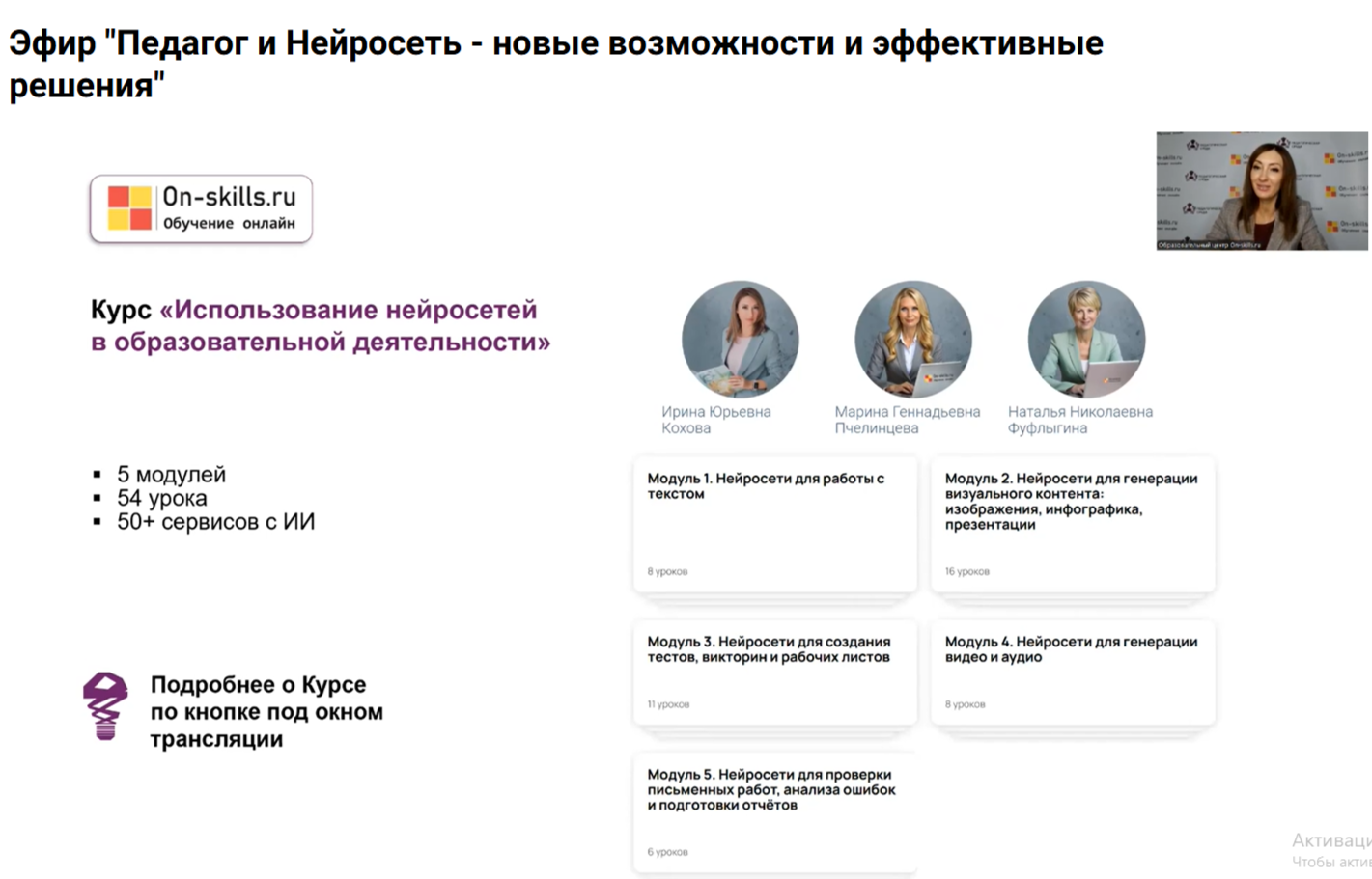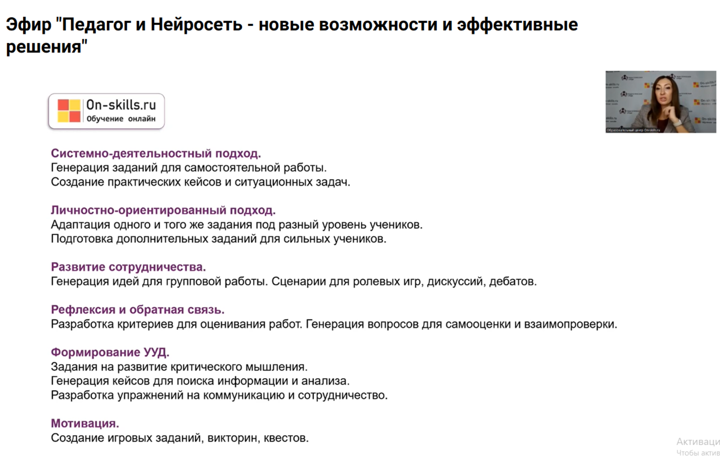 В ходе мероприятия были рассмотрены ключевые аспекты использования нейросетей в педагогической практике:
