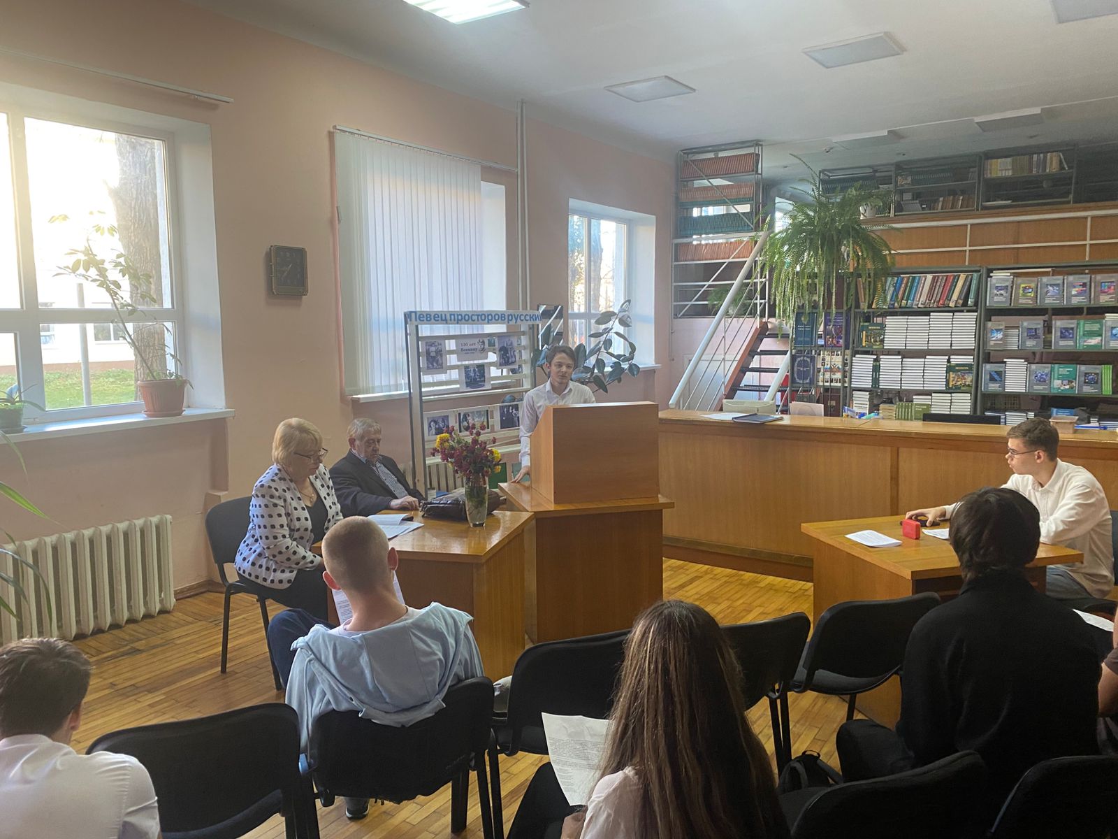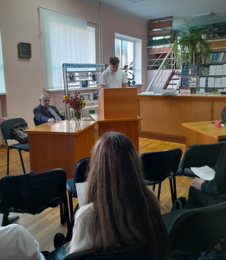К этому дню в читальном зале была оформлена книжная выставка «Певец просторов русских», посвященная жизни и творчеству замечательного мастера слова. Гостями и участниками этого события были студенты группы РЭУ 253, классный руководитель группы Марьям Ханапиевна Минина, преподаватель литературы Татьяна Николаевна Долотова, а также писатель-краевед, автор многих книг о русских классиках, побывавших на Кавказе, Виктор Николаевич Кравченко.