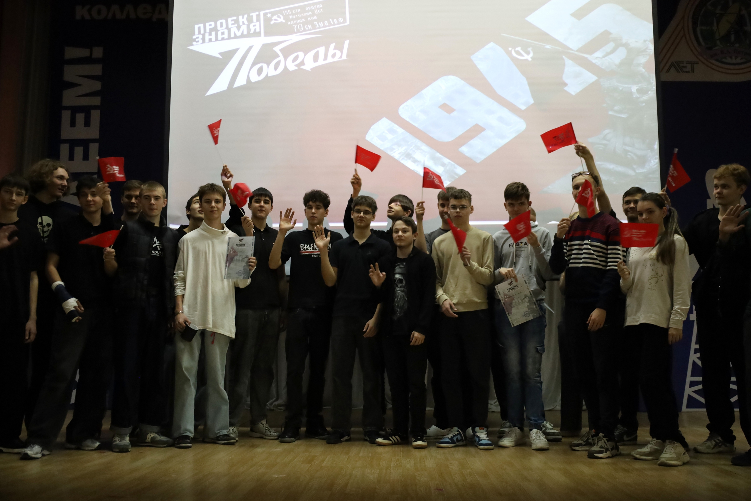 Вчера студенты колледжа связи стали активными участниками мероприятия, проводимого в рамках масштабного проекта «Победа в наших сердцах». Кульминацией события стало создание студентами копии Знамени Победы, символизирующего героизм и самоотверженность советского народа в годы Великой Отечественной войны.
