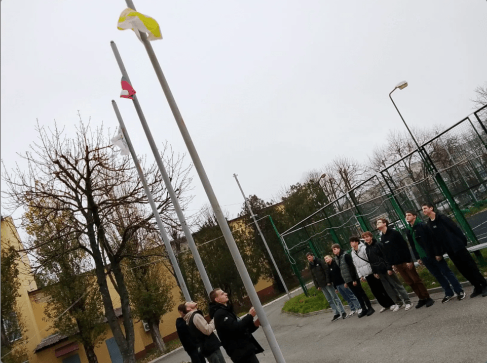 1 декабря в СКС состоялась еженедельная церемония поднятия государственного флага Российской Федерации. В ней приняли участие студенты группы ИКС 232 и преподаватель Г. А. Черкашин.