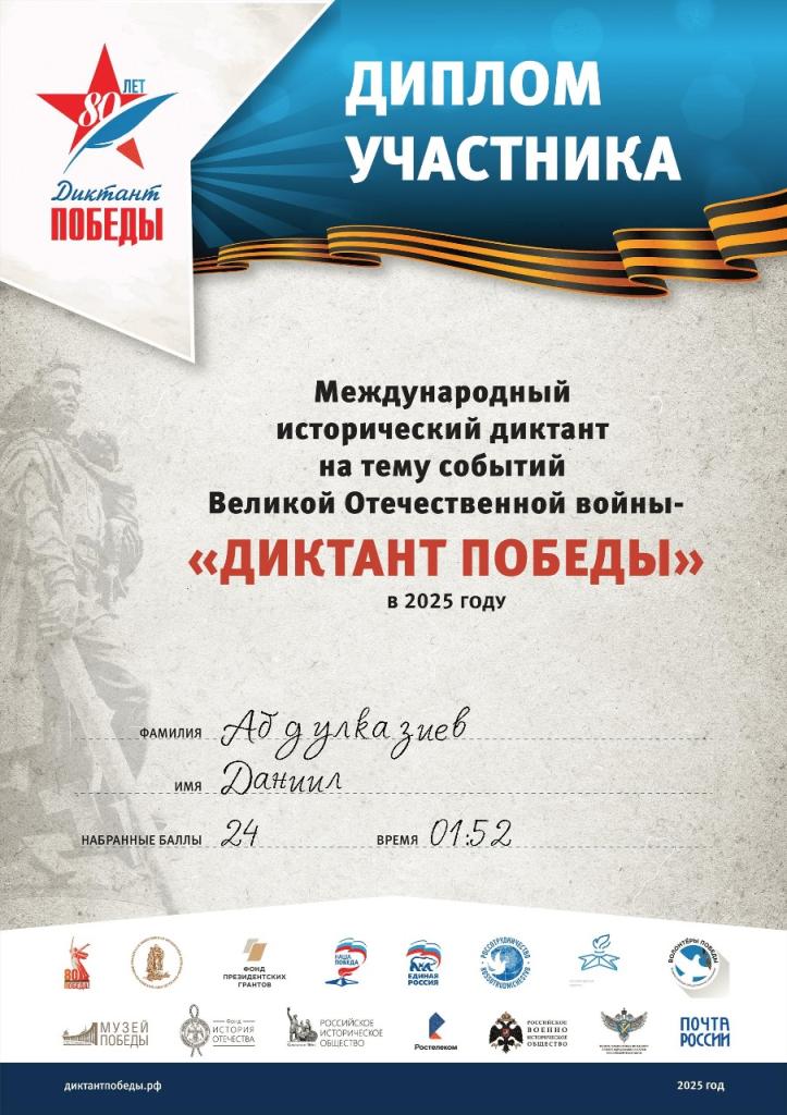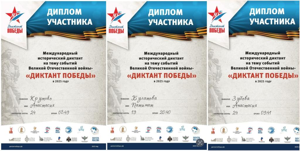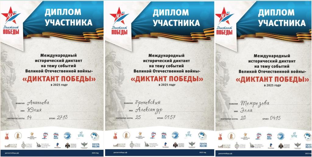 Все участники «Диктанта Победы» получили сертификаты.