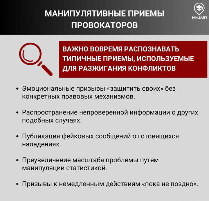 В настоящее время фиксируются попытки различных деструктивных сил использовать информацию о резонансных преступлениях в качестве инструмента для разжигания межнациональной розни.