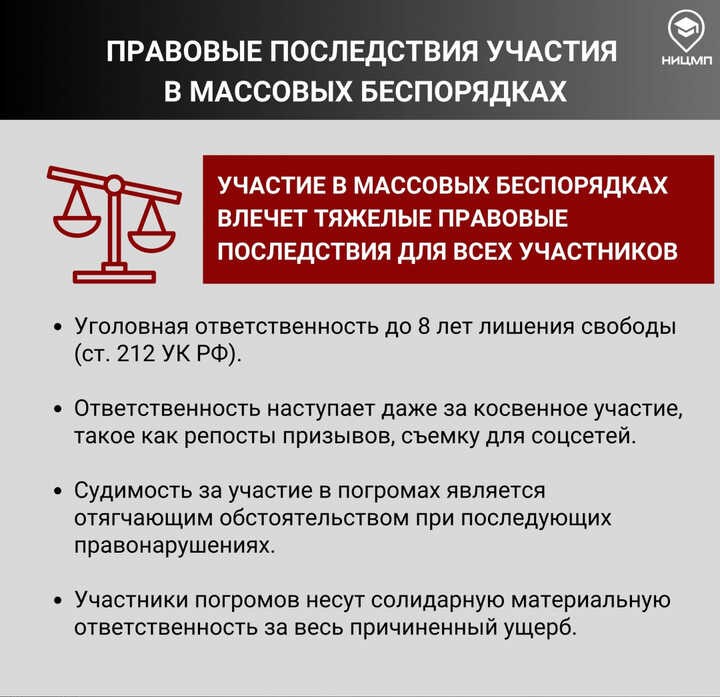 ✔️какие правовые последствия ждут участников массовых беспорядков;