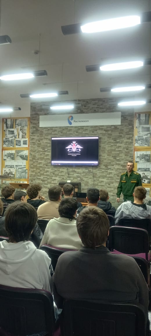 13 ноября 2025 года в рамках профориентационной работы для студентов выпускных курсов состоялась важная и вдохновляющая встреча с майором Военно-космической академии имени Петра Великого (г. Балашиха) Денисом Александровичем Митюковым, а также с курсантами Д. Ш. Даудовым и И. Ю. Покровским из Нижегородского училища.