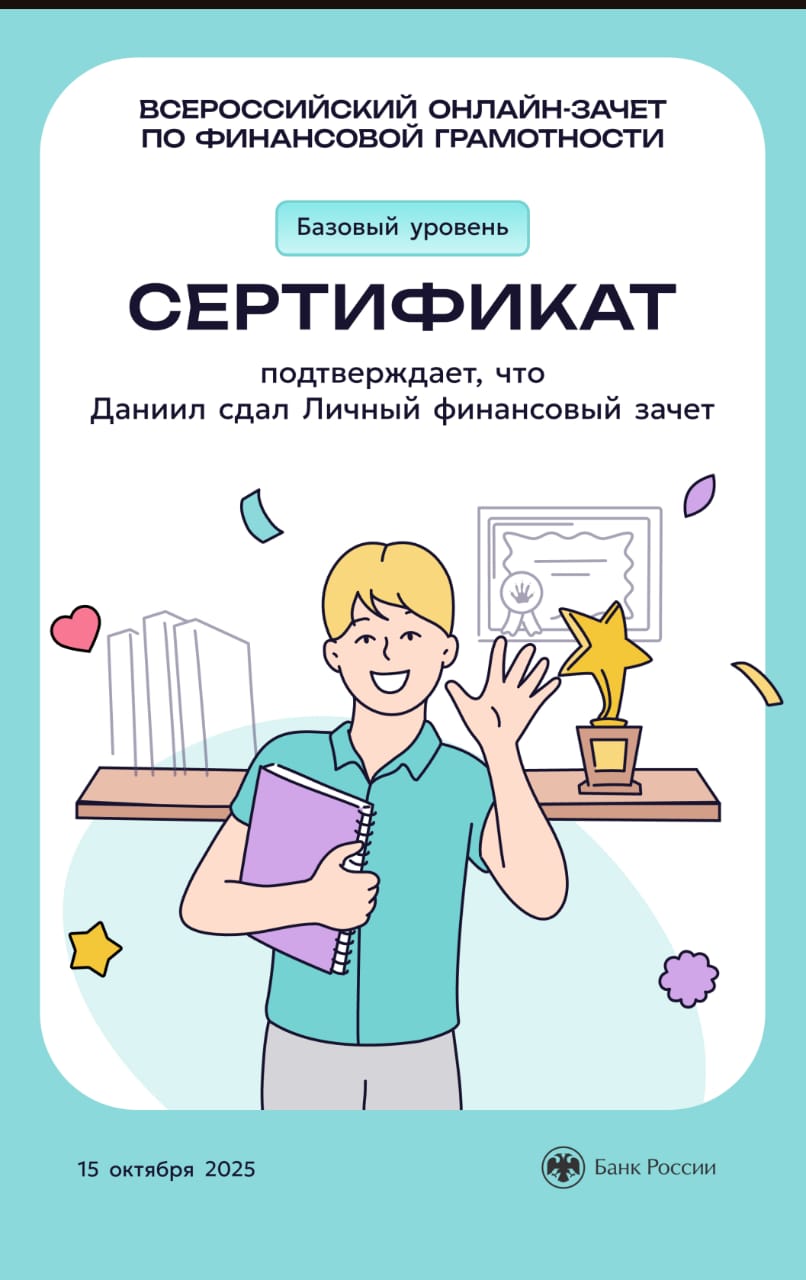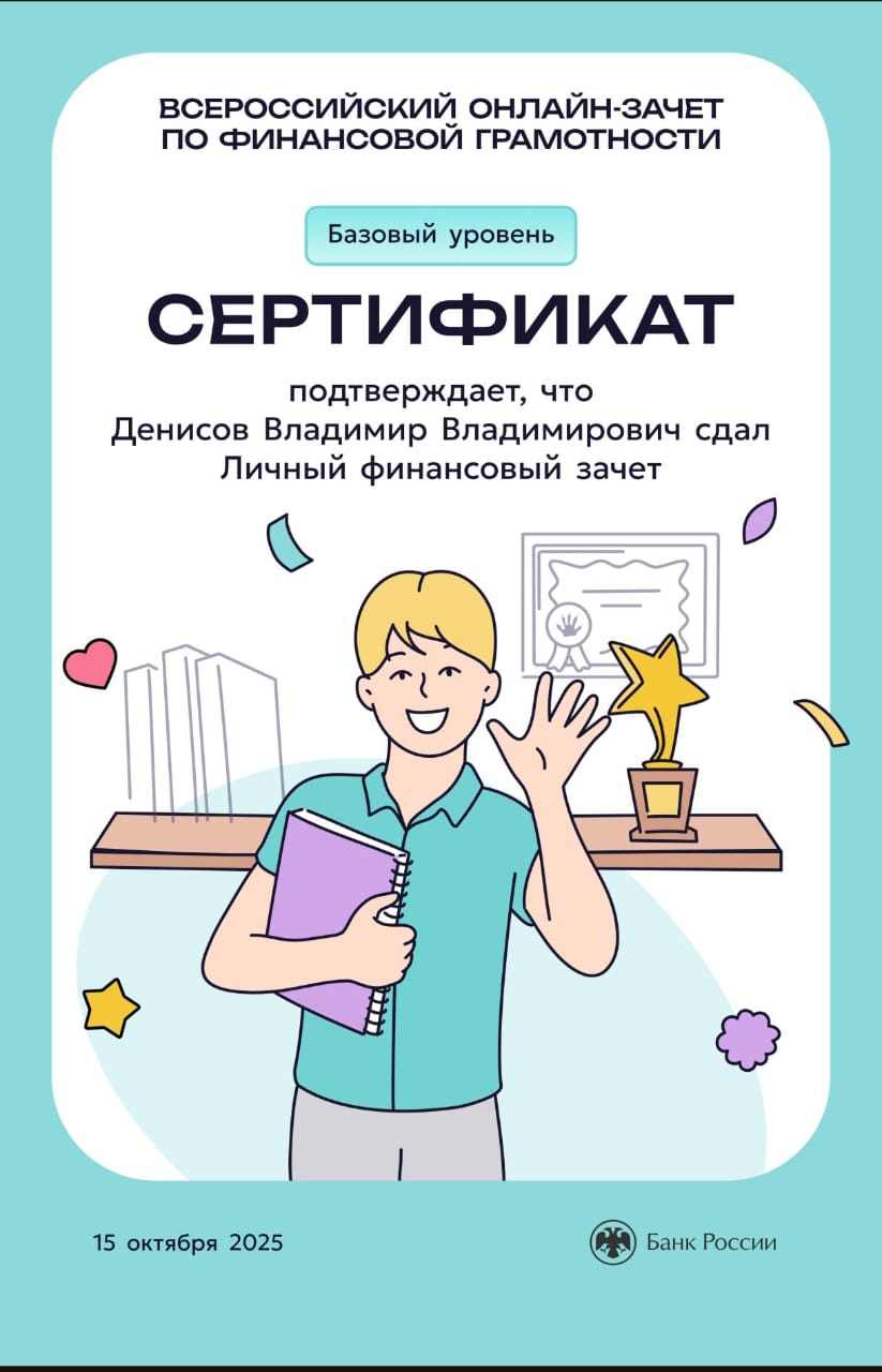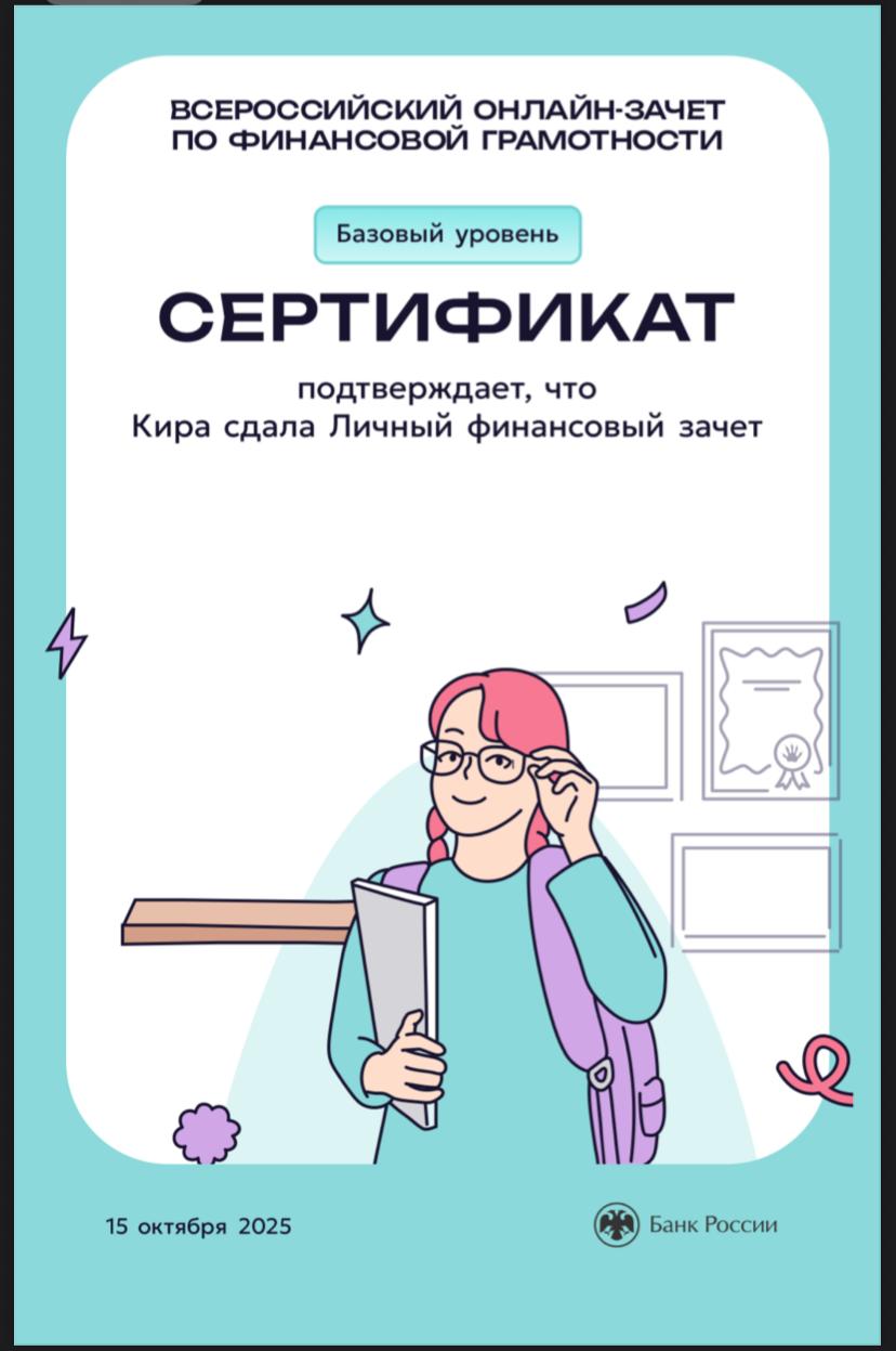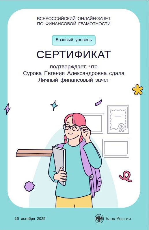 Студенты группа ИКС 243 с классным руководителем Евгенией Александровной Суровой прошли Всероссийский онлайн-зачет по финансовой грамотности и узнали, как ориентироваться в мире финансов, а также получили список полезных материалов, которые помогут в будущем устранить пробелы в знаниях.