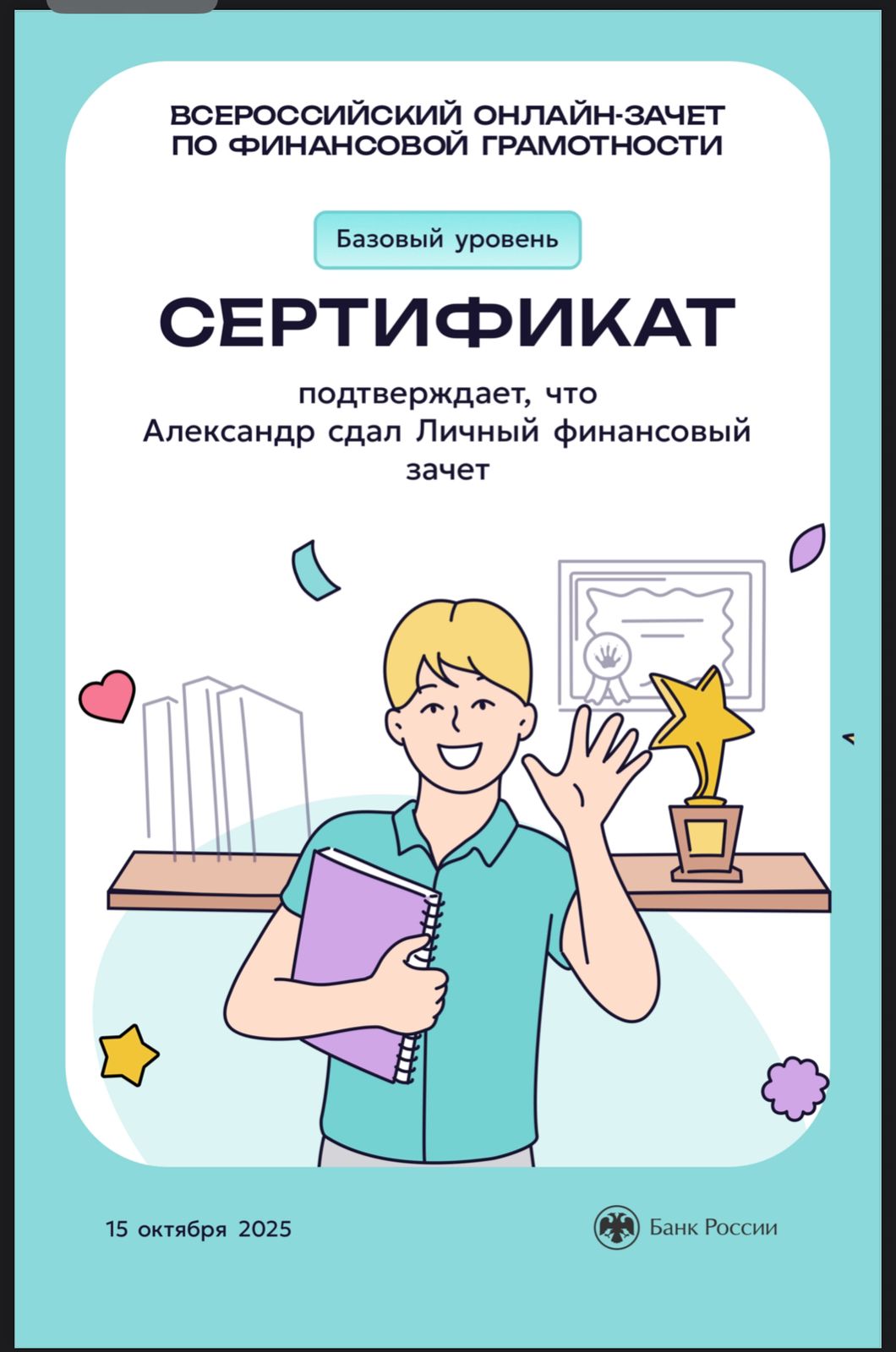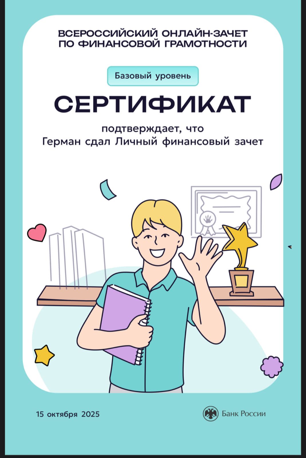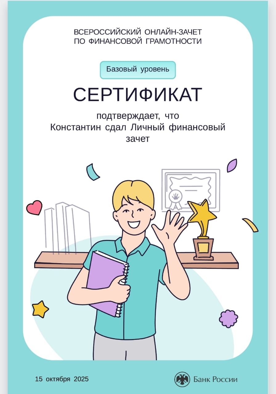 Студенты группа ИКС 243 с классным руководителем Евгенией Александровной Суровой прошли Всероссийский онлайн-зачет по финансовой грамотности и узнали, как ориентироваться в мире финансов, а также получили список полезных материалов, которые помогут в будущем устранить пробелы в знаниях.