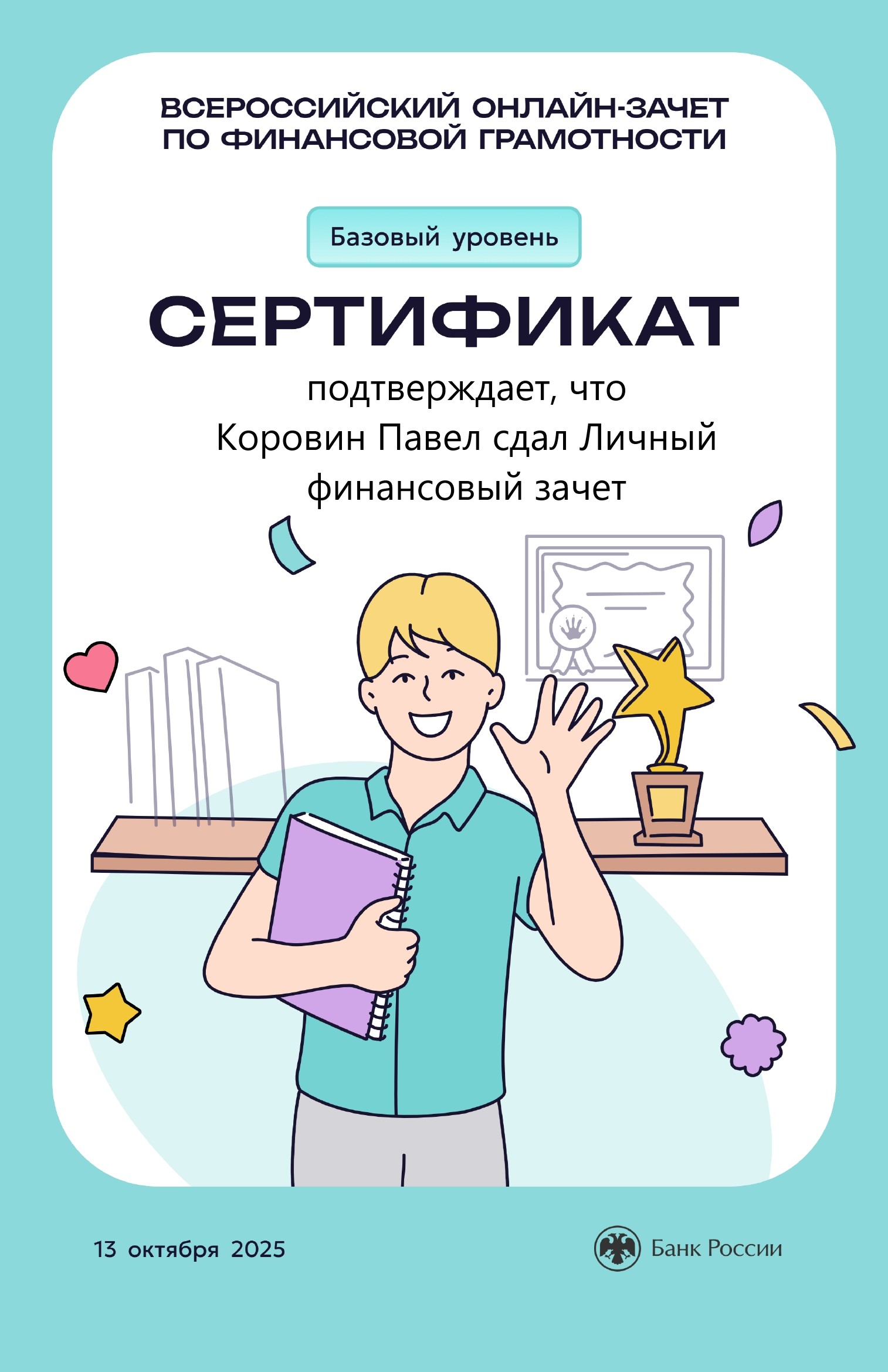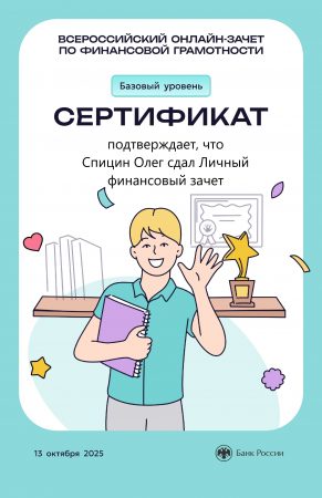 Задания, основанные на реальных жизненных ситуациях, были направлены на развитие навыков рационального финансового поведения. Зачет позволил участникам не только оценить свои знания, но и получить индивидуальные рекомендации для дальнейшего обучения.