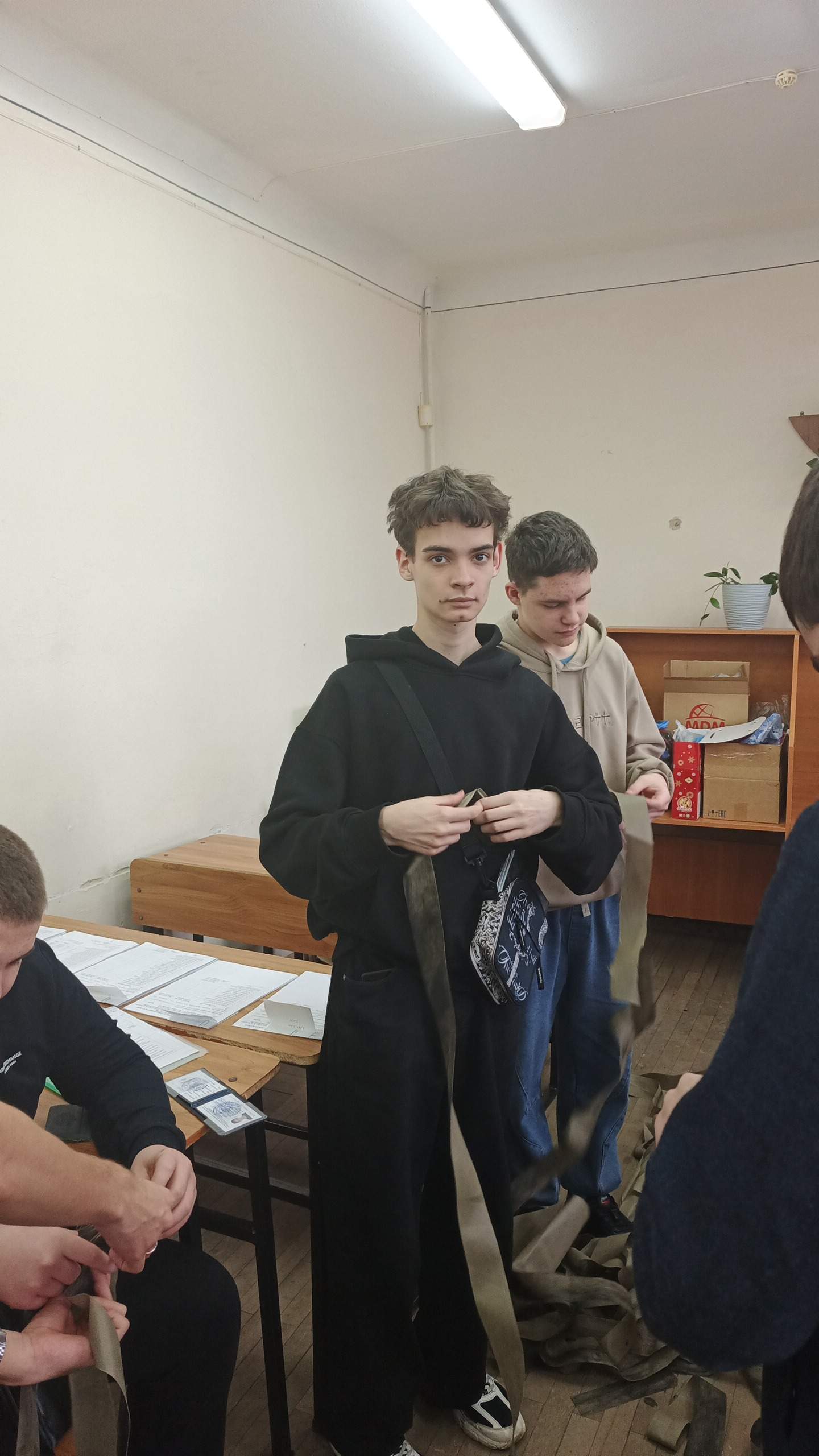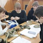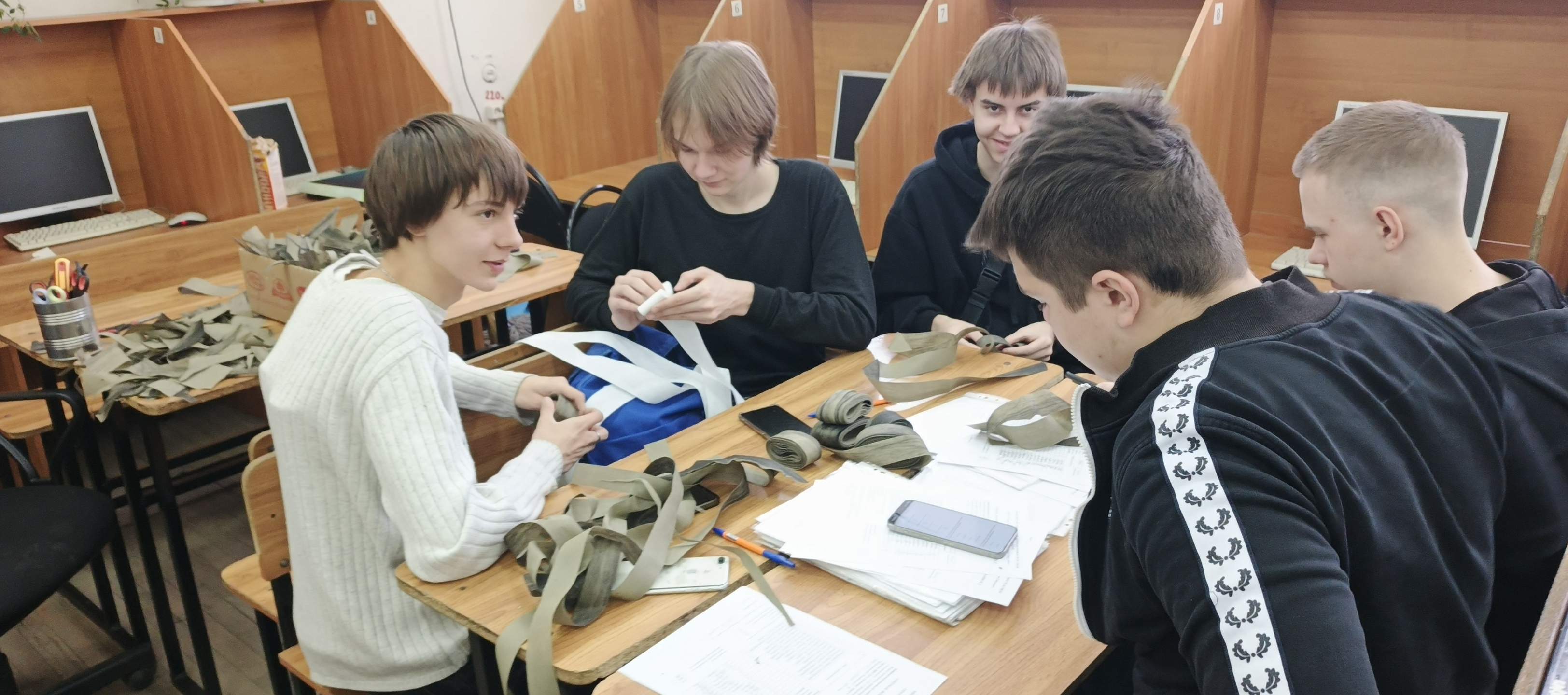Были также проведены мастер-классы для студентов нового набора. Ребятам рассказали о работе, которая проводится в стенах нашего учебного заведения по подготовке материала для плетения маскировочных сетей и маскировочных халатов.
