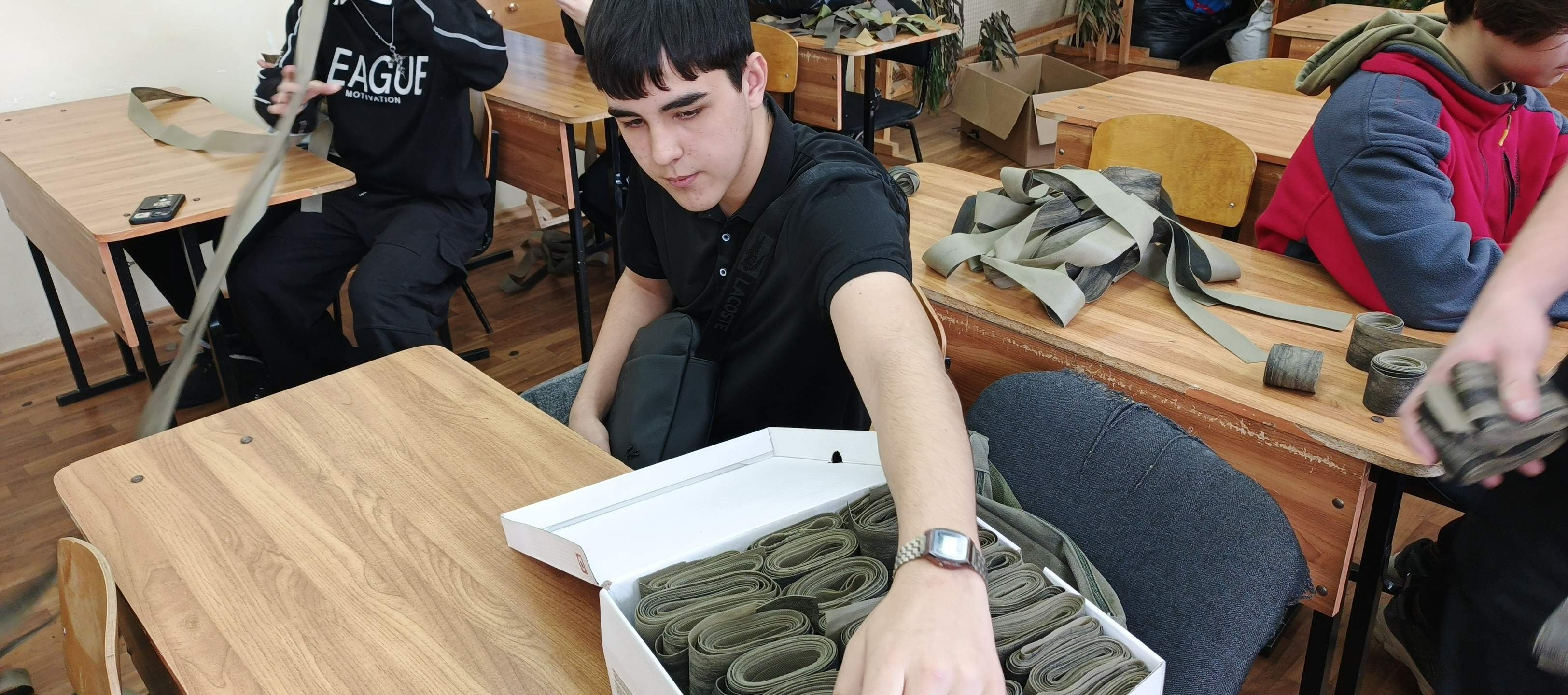 С начала учебного года в нашем колледже продолжает работу кружок- мастерская «Для СВОих». В свободное от учебы время участники кружка занимаются важным и очень нужным делом, которое можно считать благотворительностью.  Силами наших студентов продолжаем осуществлять подготовку материала для плетения маскировочных сетей. В начале сентября ребята начали плести маскировочный халат «Леший». Он позволит бойцам быть практически незаметными, сливаться с местностью. Студенты групп ИП245, ИП246 отправили очередную партию ленточек, для того чтобы мастерицы продолжали плести маскировочные сети.