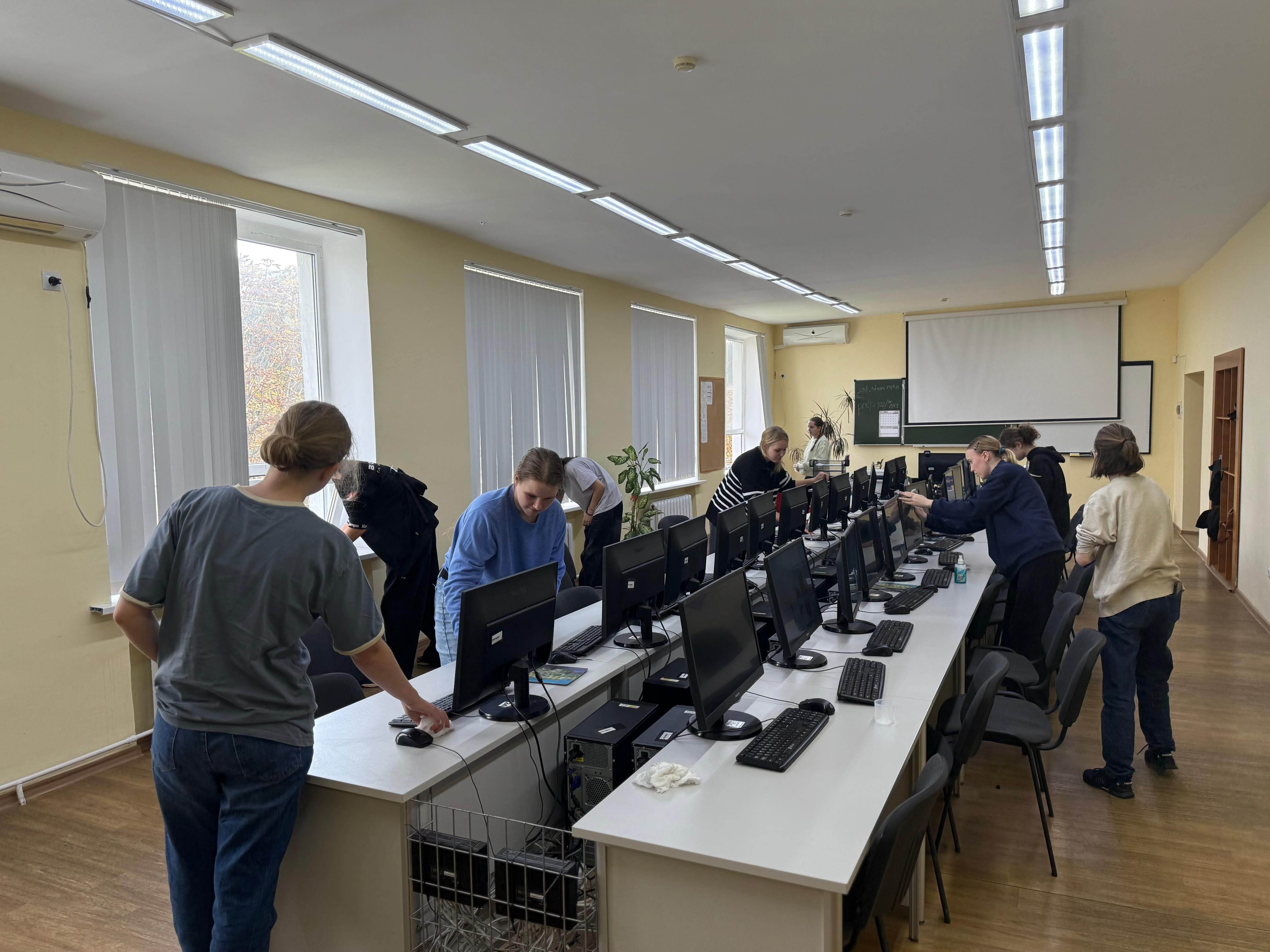 Молодые люди с энтузиазмом взялись за дело: протёрли мебель, очистили рабочие места, навели порядок на стеллажах – и привели кабинет в образцовый вид. Подобные мероприятия помогают не только поддерживать чистоту и уют в учебных аудиториях, но и формируют у студентов чувство ответственности, коллективизма и бережного отношения к своему образовательному пространству.