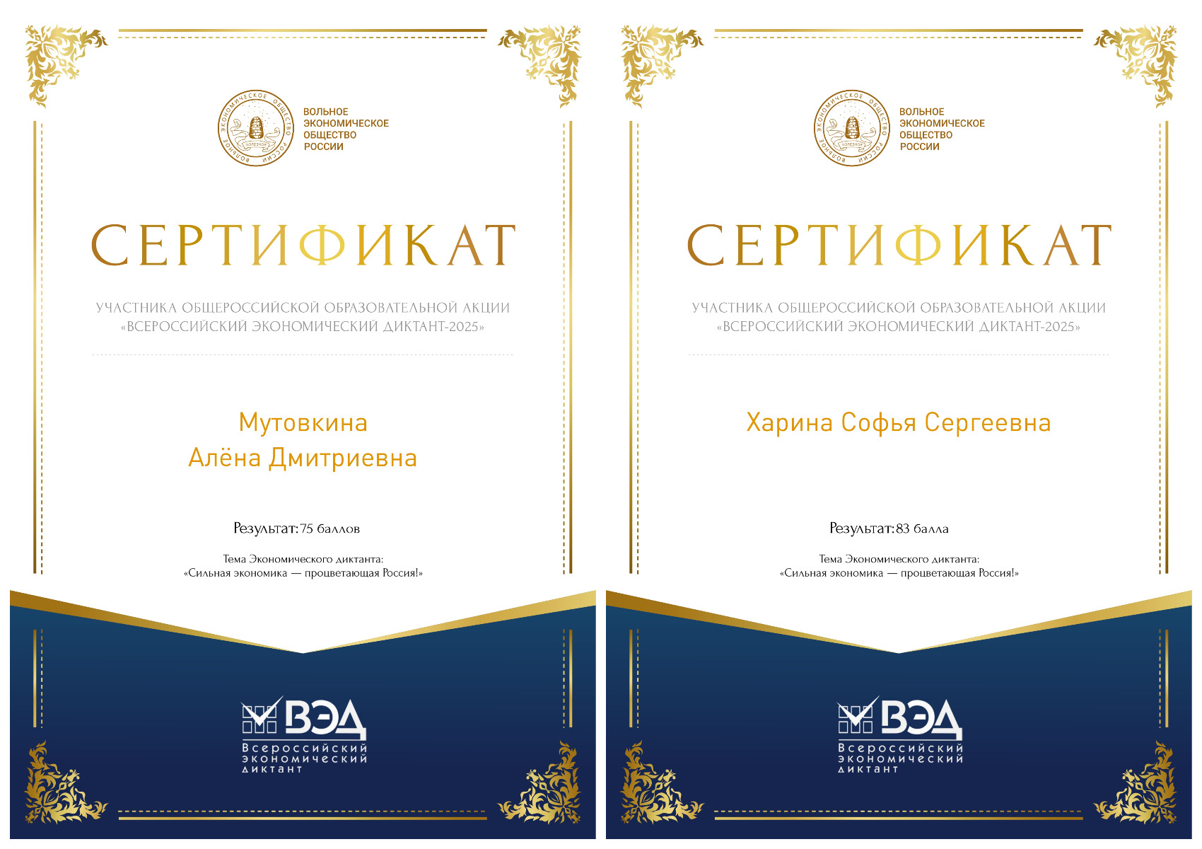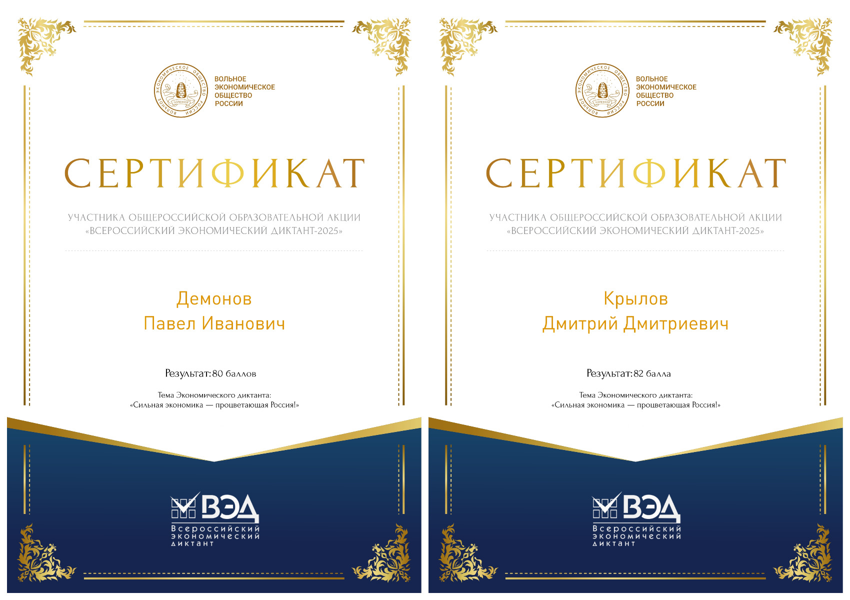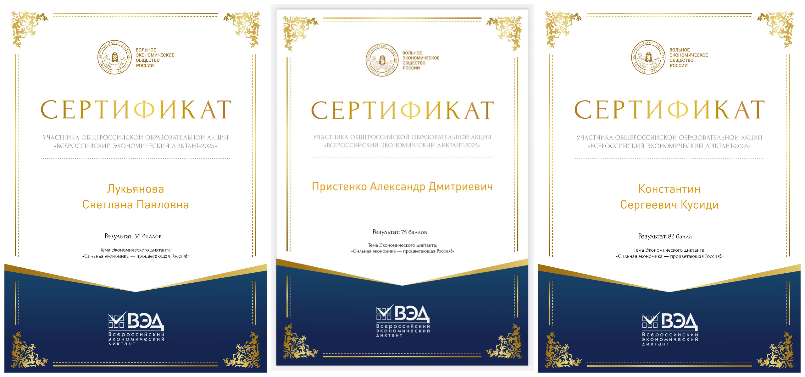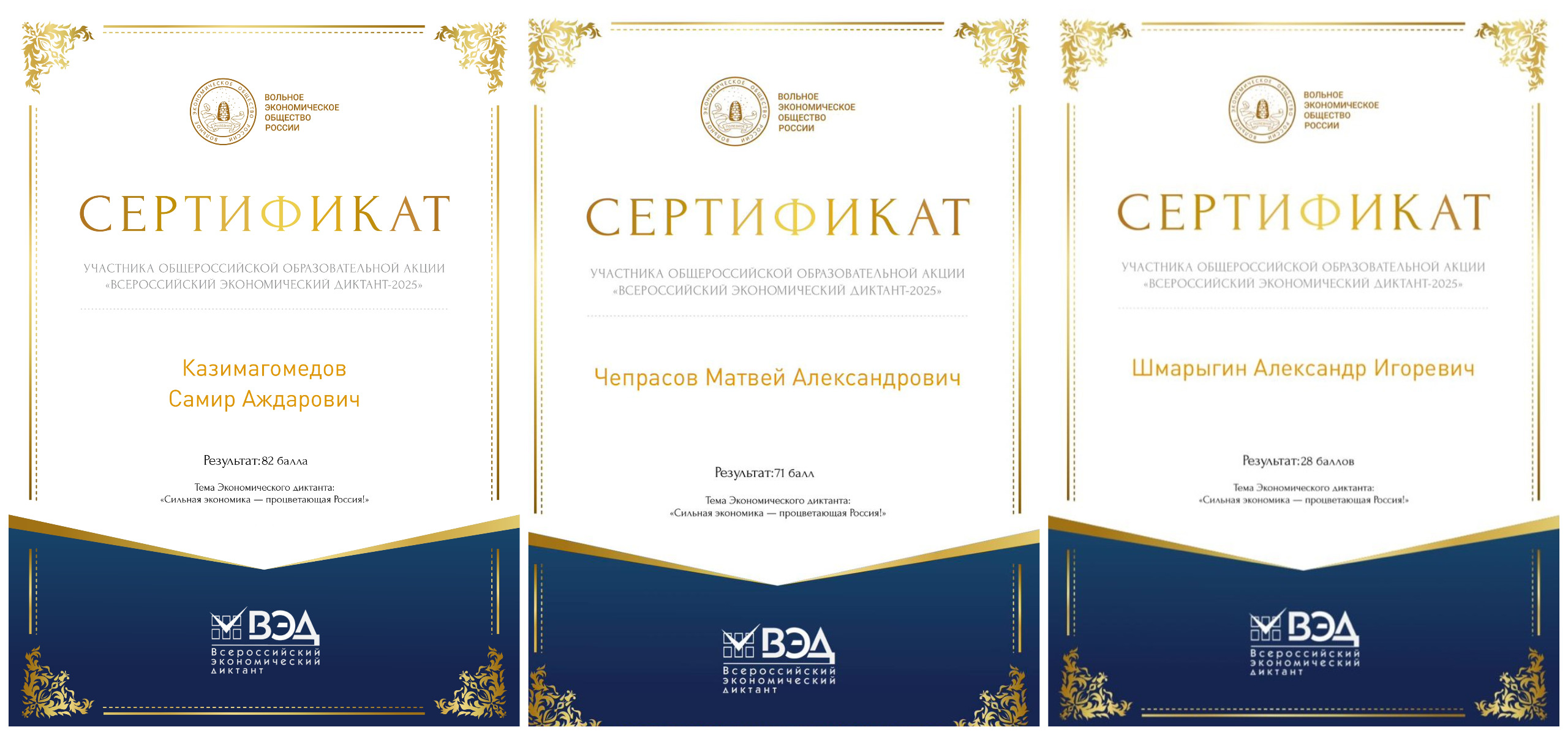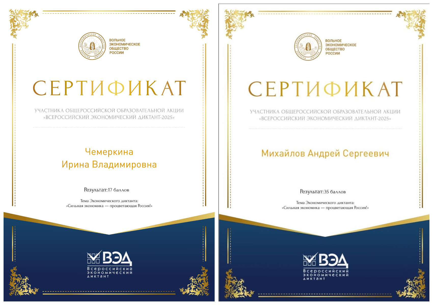 По итогам мероприятия все участники получили сертификаты, подтверждающие участие во Всероссийском экономическом диктанте.