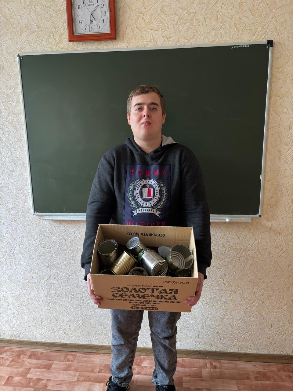 Студенты групп ИП 232 и ИВ 234 под руководством классного руководителя Татьяны Сергеевны Офицеркиной, а также сотрудники финансово-экономического отдела Марина Александровна Жалдак и А. Савенко собрали жестяные банки для производства блиндажных свечей.
