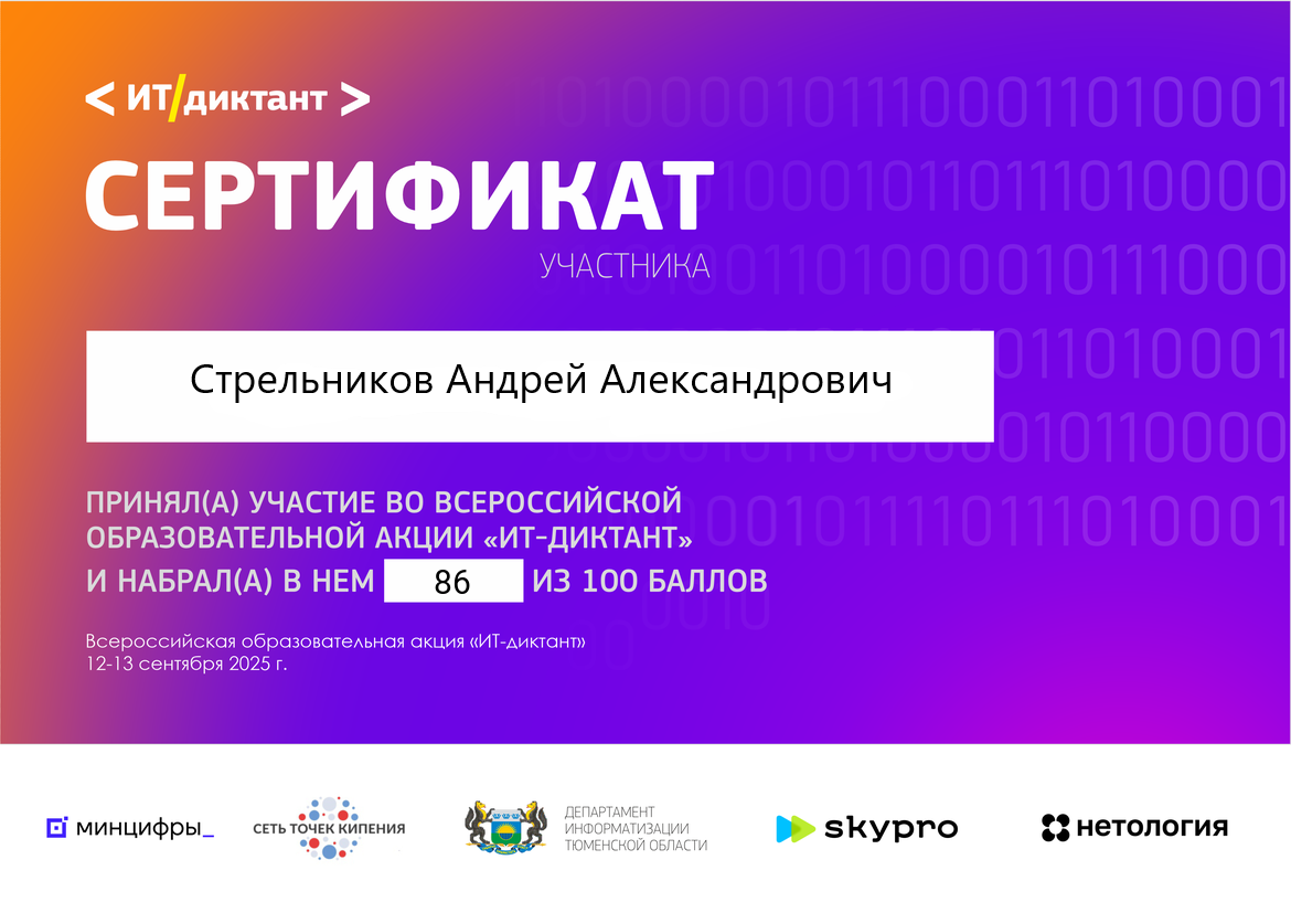 Ребята успешно справились с заданиями диктанта, продемонстрировав высокий уровень знаний и умений в области информационных технологий. За проявленные знания и приложенные старания все участники были награждены Сертификатами участника.