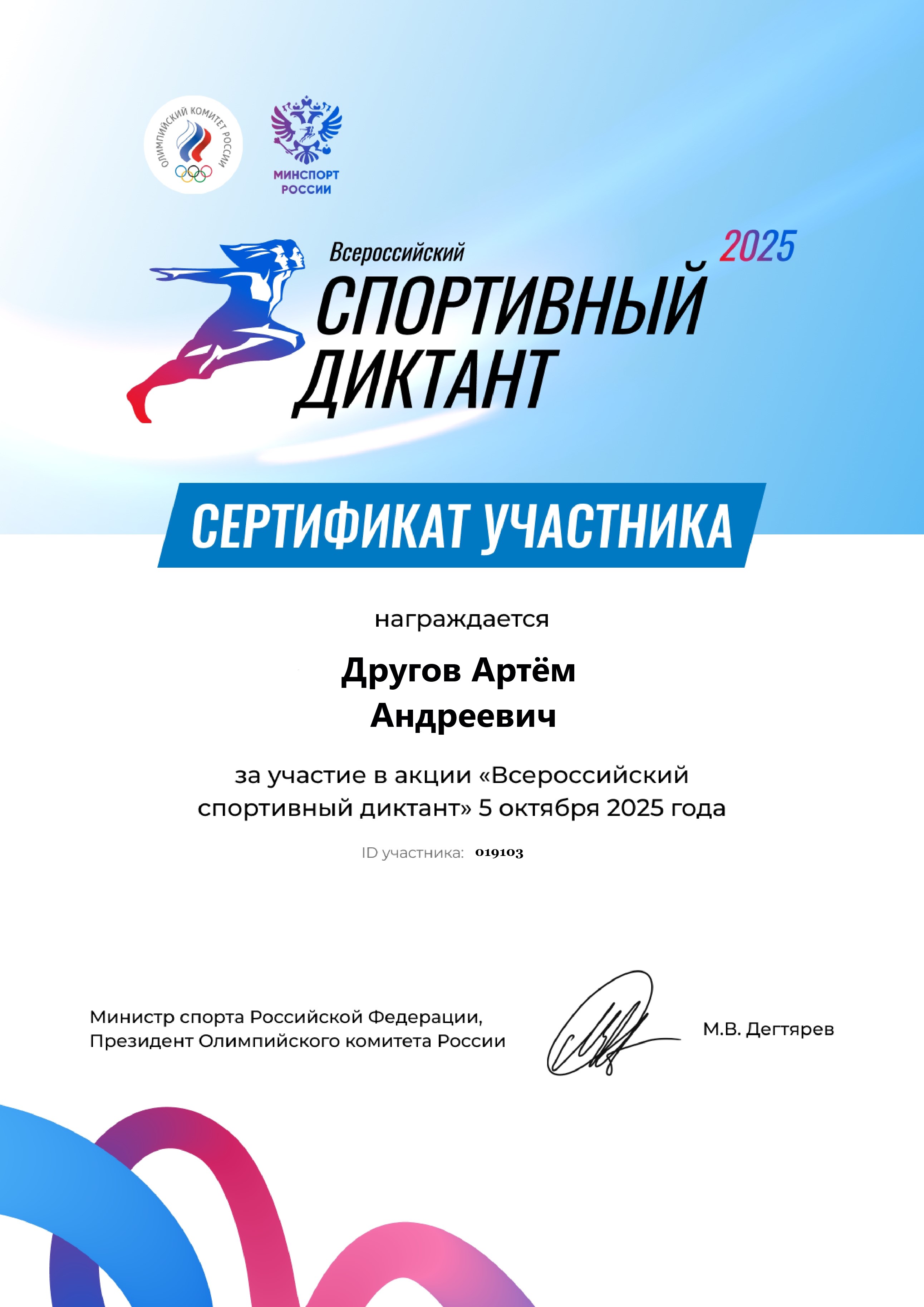 Мероприятие, направленное на повышение уровня спортивной грамотности и популяризацию здорового образа жизни, охватило всю страну. Участники прошли тест из 25 вопросов, проверяющих знания в области физической культуры, спорта и здорового образа жизни.