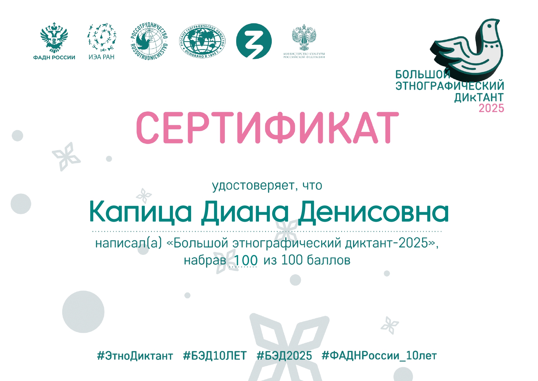 6 ноября 2025 года студенты групп ИП 232 и ИВ 234, а также их классный руководитель Татьяна Сергеевна Офицеркина приняли активное участие в юбилейной X Всероссийской просветительской акции «Большой этнографический диктант». Мероприятие прошло в онлайн-формате, что позволило студентам из разных уголков страны объединиться и продемонстрировать свои знания вопросов культурного и этнического многообразия России.