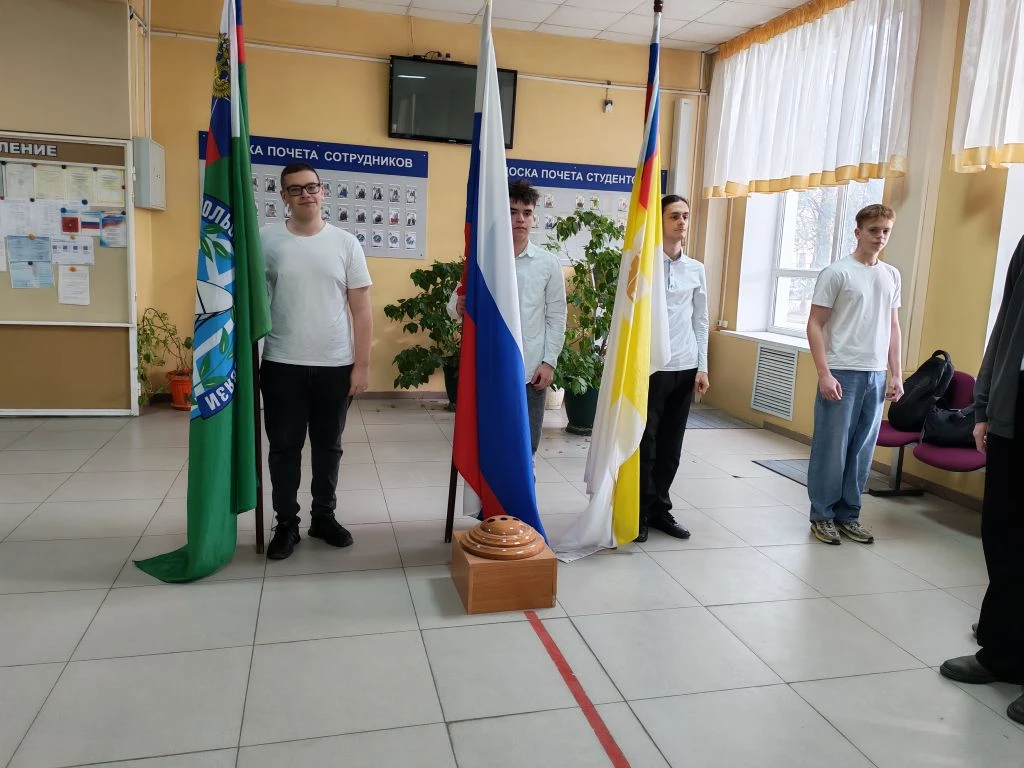 В колледже традиционная еженедельная церемония поднятия Государственного флага Российской Федерации объединила студентов двух групп — ИП242 и ИП222. Право поднять флаг было предоставлено лучшим студентам, которые своими учебными успехами и активной жизненной позицией доказали право представлять свои коллективы на торжественном мероприятии.