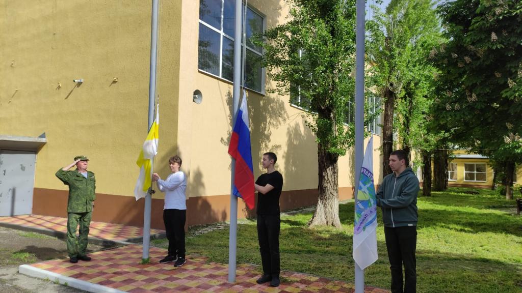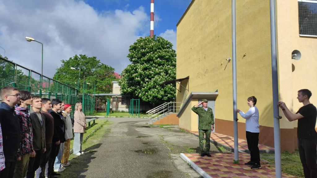 19 мая 2025 года в Ставропольском колледже связи прошла еженедельная церемония поднятия Государственного флага и исполнения гимна Российской Федерации.