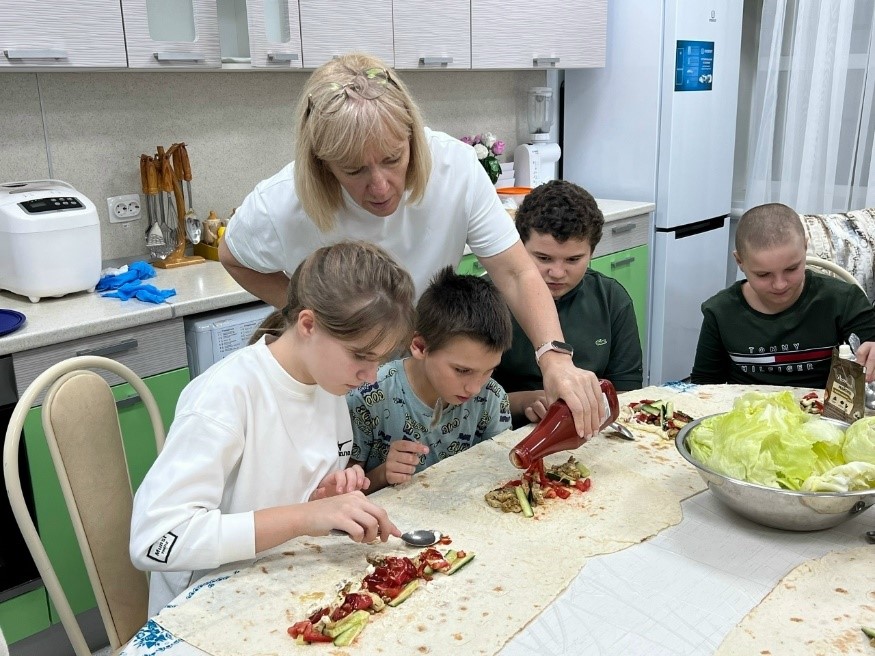 Ученики с энтузиазмом включились в процесс: нарезали овощи, готовили соус, укладывали начинку и аккуратно заворачивали лаваш. Каждый смог создать свою уникальную по вкусу шаурму. В финале все с удовольствием продегустировали готовые блюда и поделились впечатлениями. Мероприятие получилось не только вкусным, но и познавательным!
