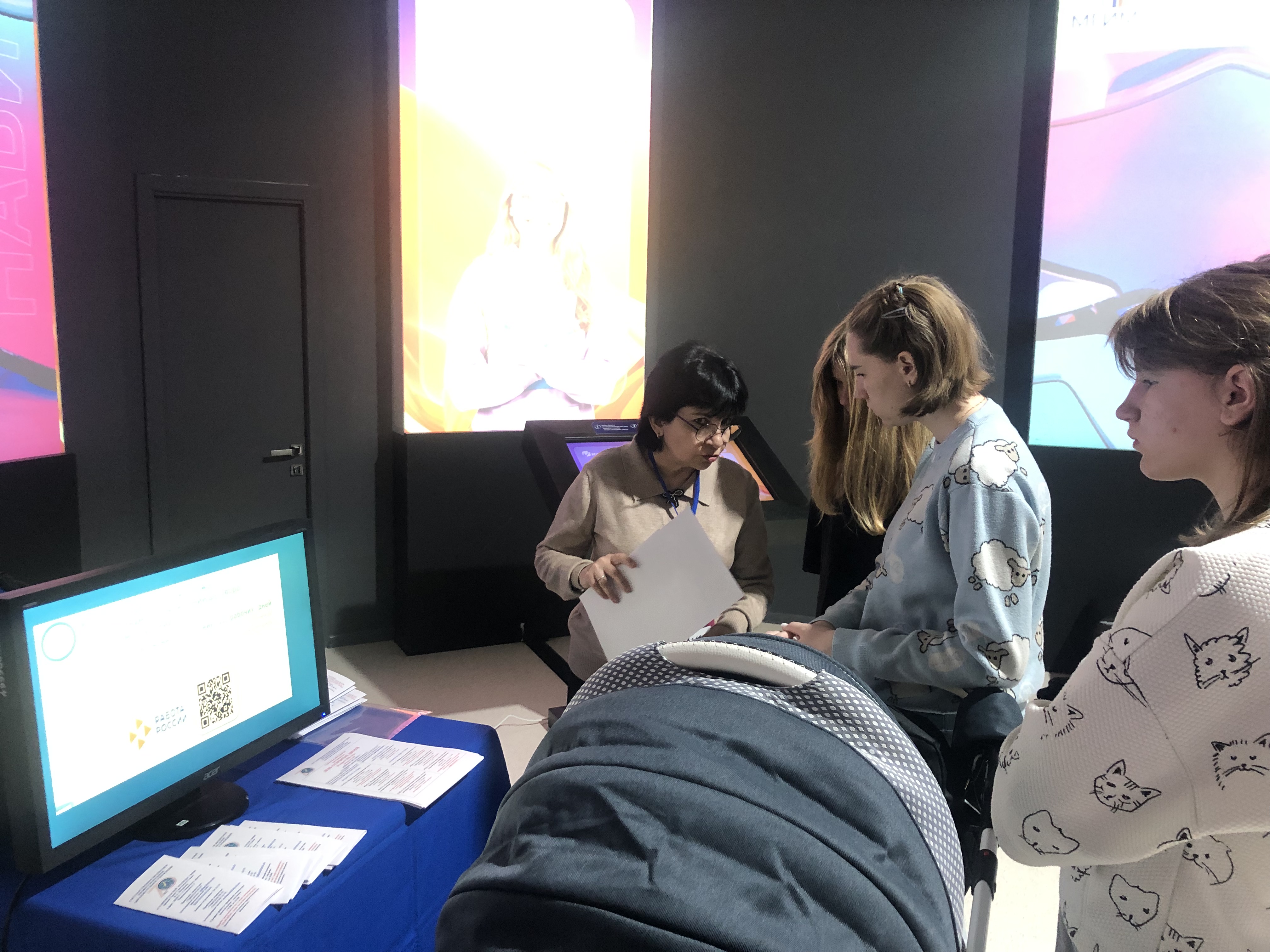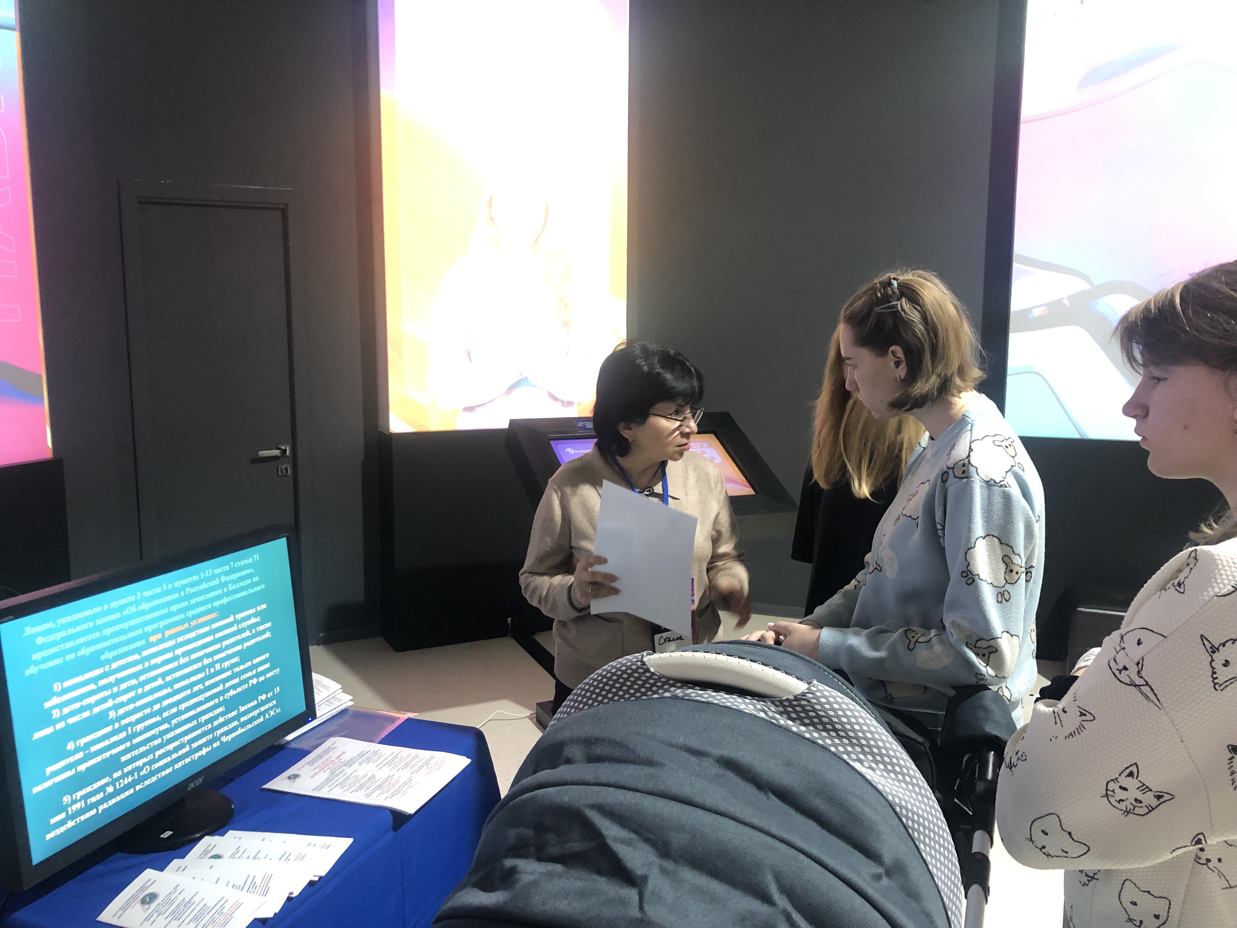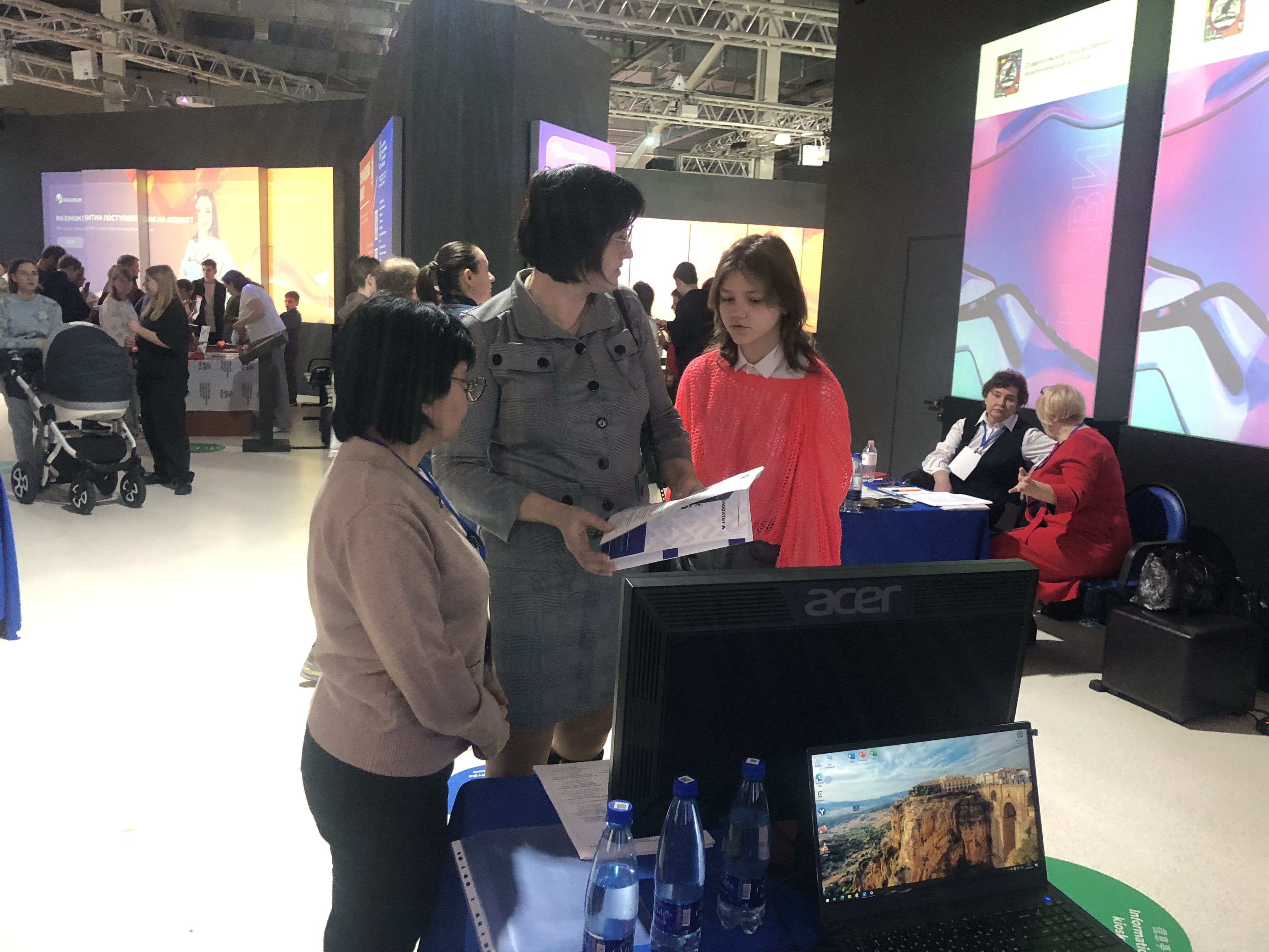 Ответственный секретарь раздала будущим абитуриентам рекламные буклеты, проконсультировала по некоторым деталям приема документов и ответила на все интересующие посетителей ярмарки вопросы.