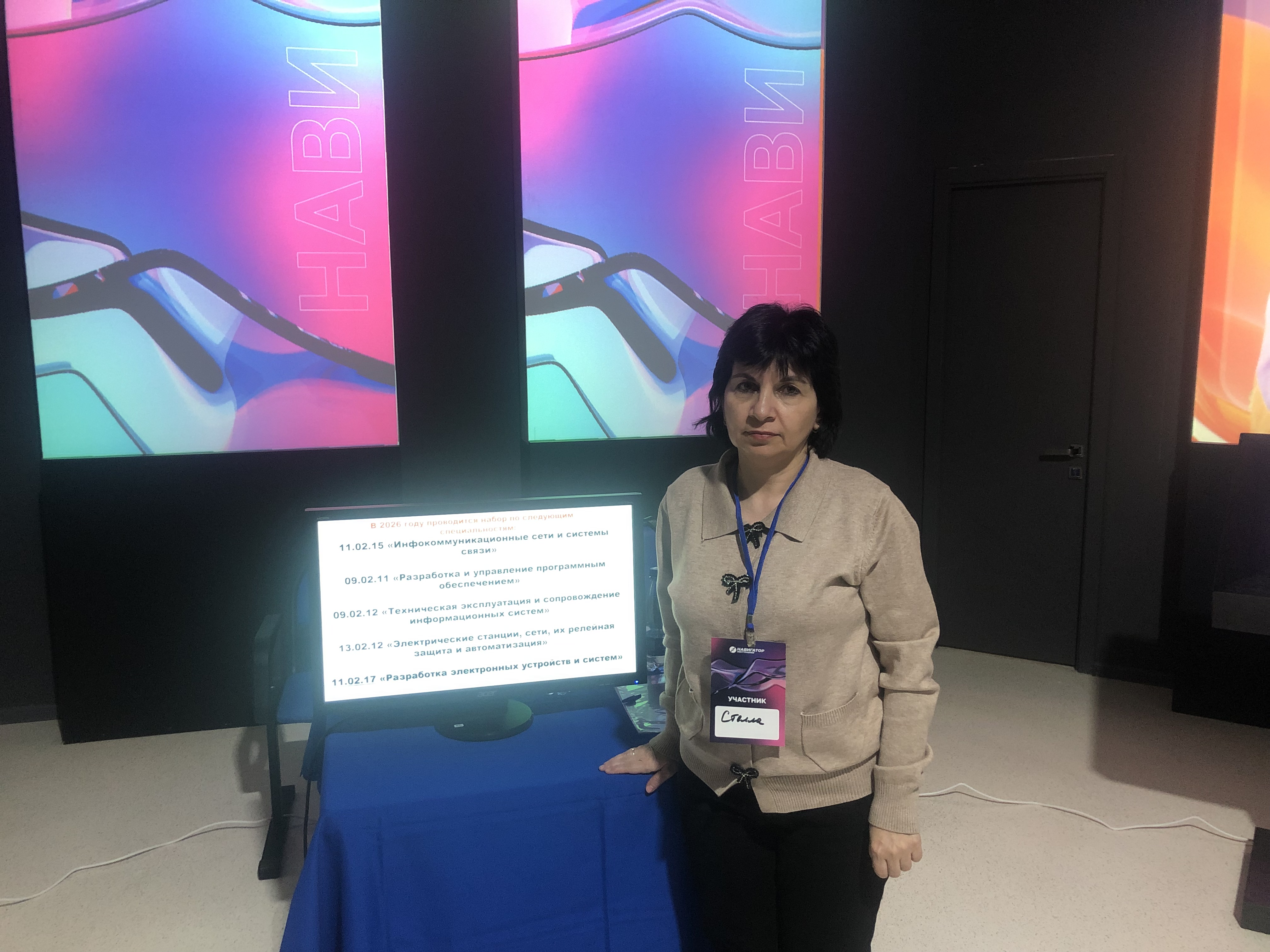 Стелла Ареговна ознакомила учащихся 9 и 11 классов со специальностями, на которые будет проводиться набор в 2026 году, а также рассказала об изменениях в Правилах приема и о преимуществах обучения в колледже.