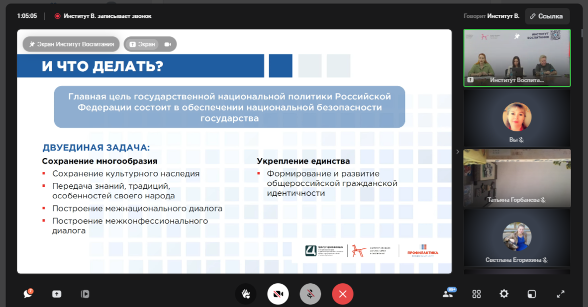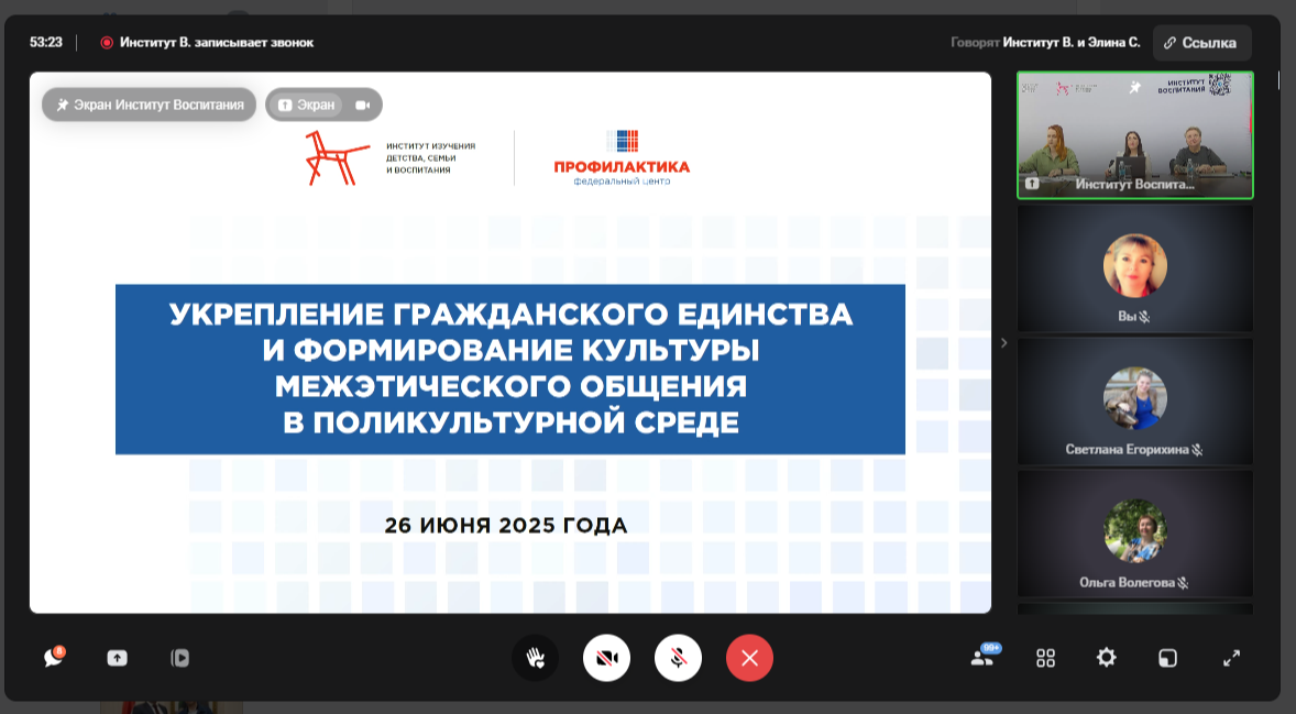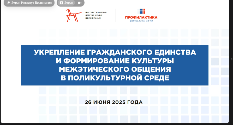 26 июня 2025г. Т.С. Офицеркина приняла участие в вебинаре «Укрепление гражданского единства и формирование культуры межэтнического общения в поликультурной среде».