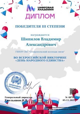5 ноября 2025 года студенты групп ИП 232 и ИВ 234 под руководством классного руководителя Татьяны Сергеевны Офицеркиной приняли активное участие во Всероссийской викторине, посвященной Дню народного единства. Учащиеся не только проверили свои знания, но и показали, что осознают важность этого праздника.