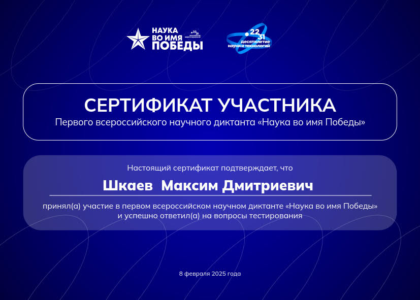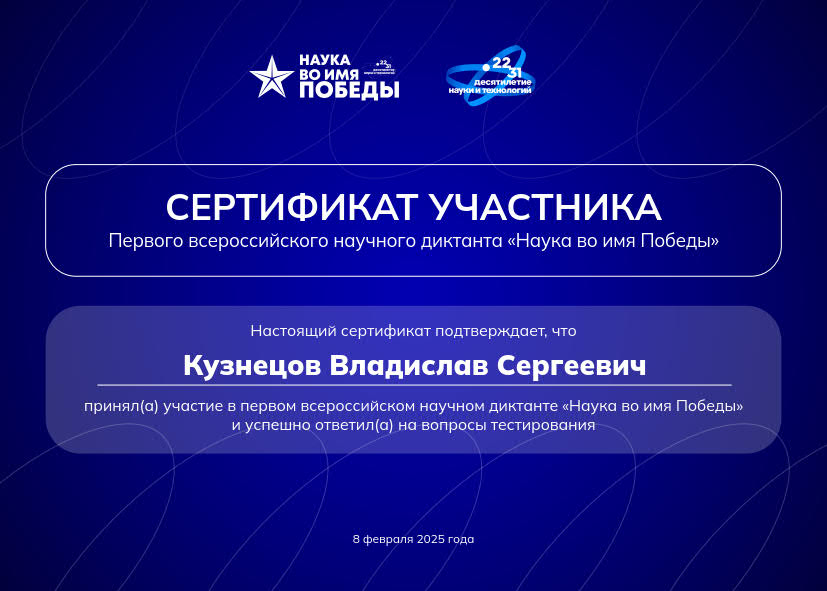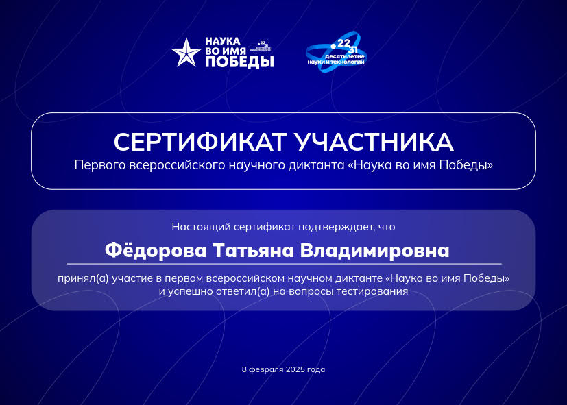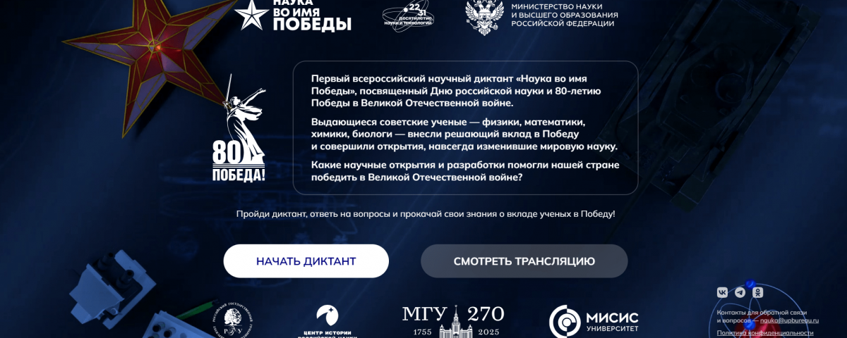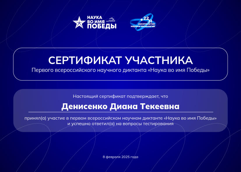 25 вопросов диктанта посвящены советским ученым, их открытиям и исследованиям в годы Великой Отечественной войны. Все участники диктанта получили именные сертификаты.